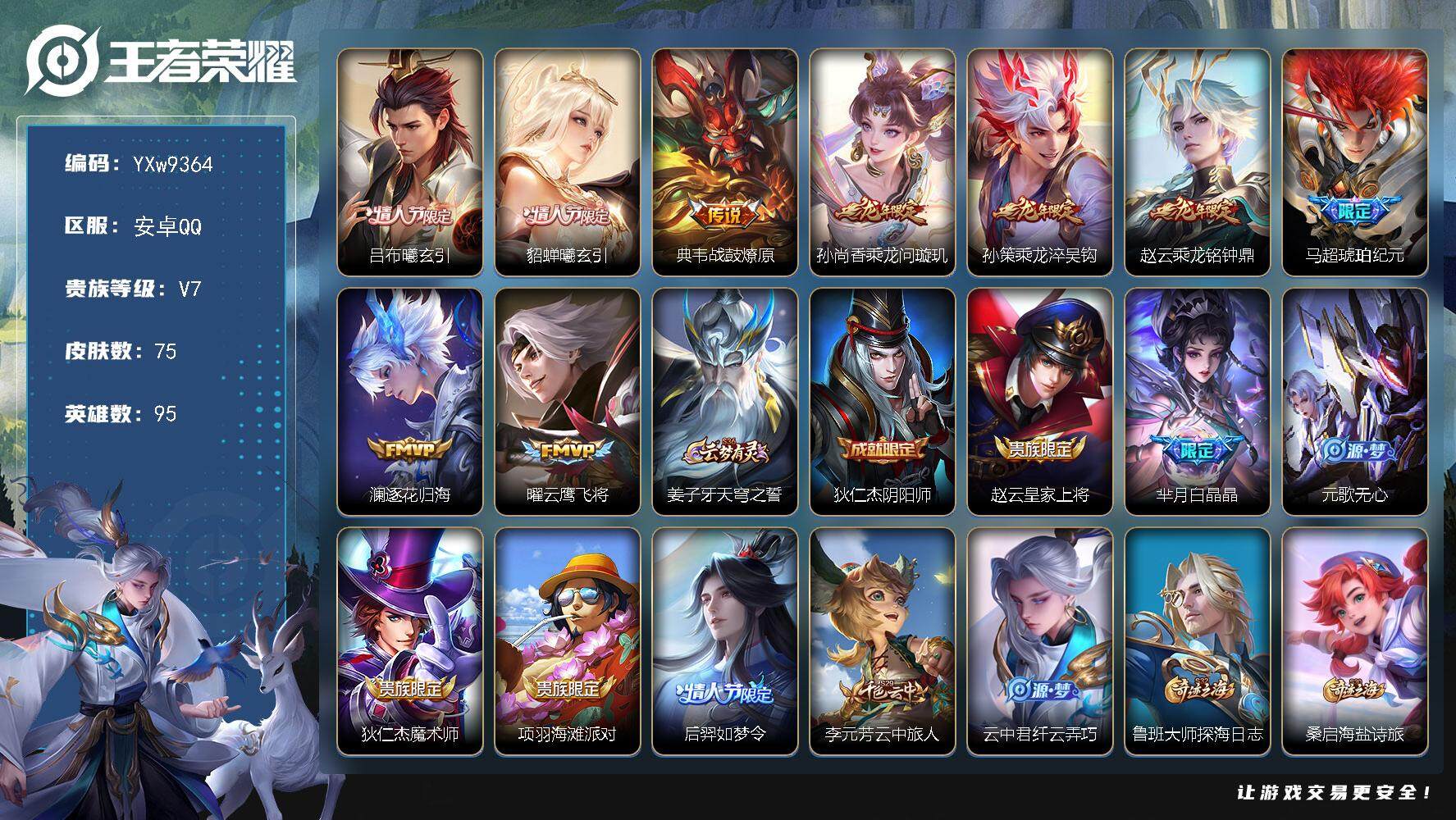 【精氪质量小号·山海炽霜斩·可二次】YXw9356-安卓Q-25英雄-12皮肤