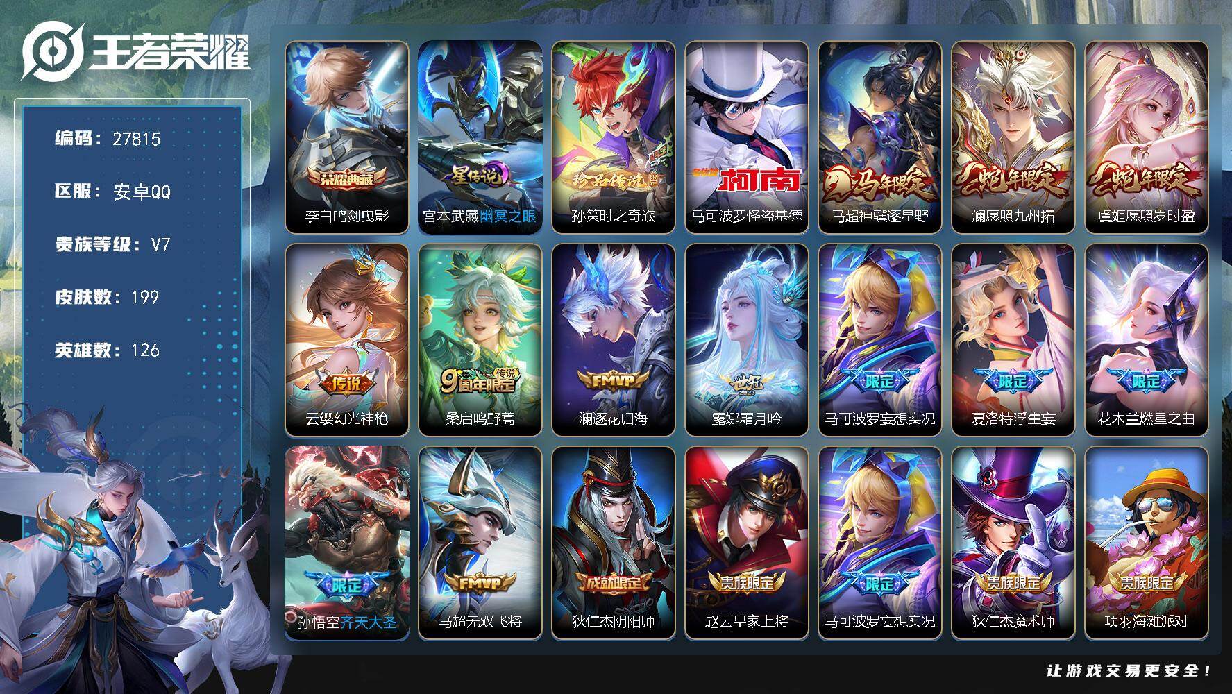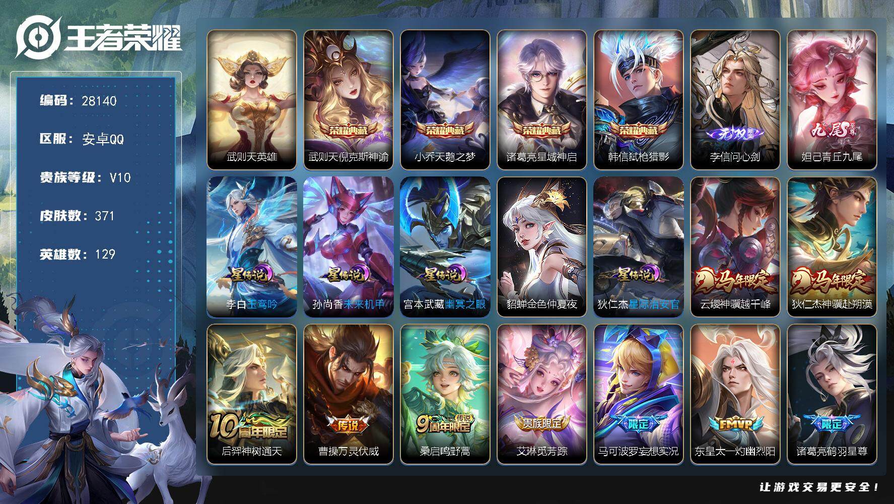 可二次【71皮肤5传说 可秒换绑】安卓QQ-78英雄-71