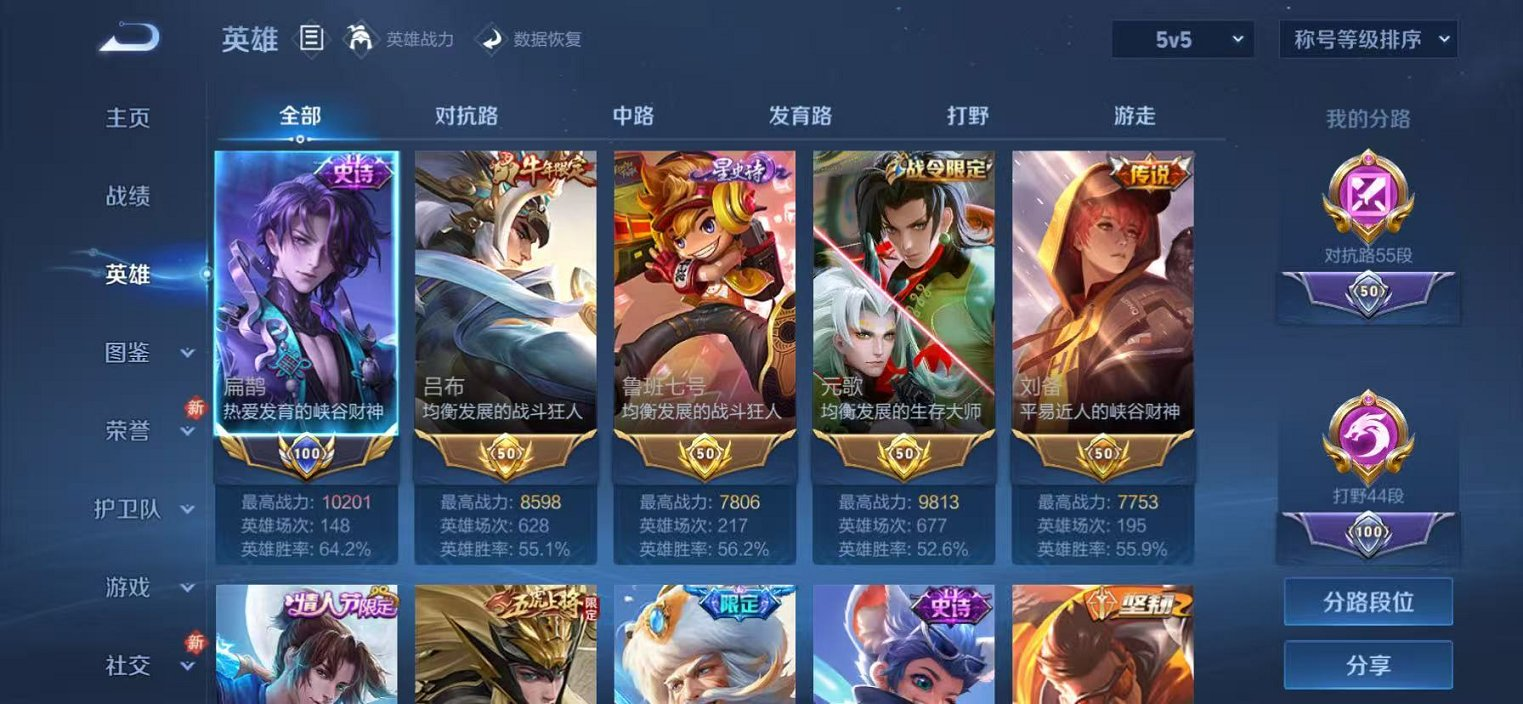 【兔年限定全套 龙年限定全套 金标孙策】贵族等级: V10 英雄数: 127