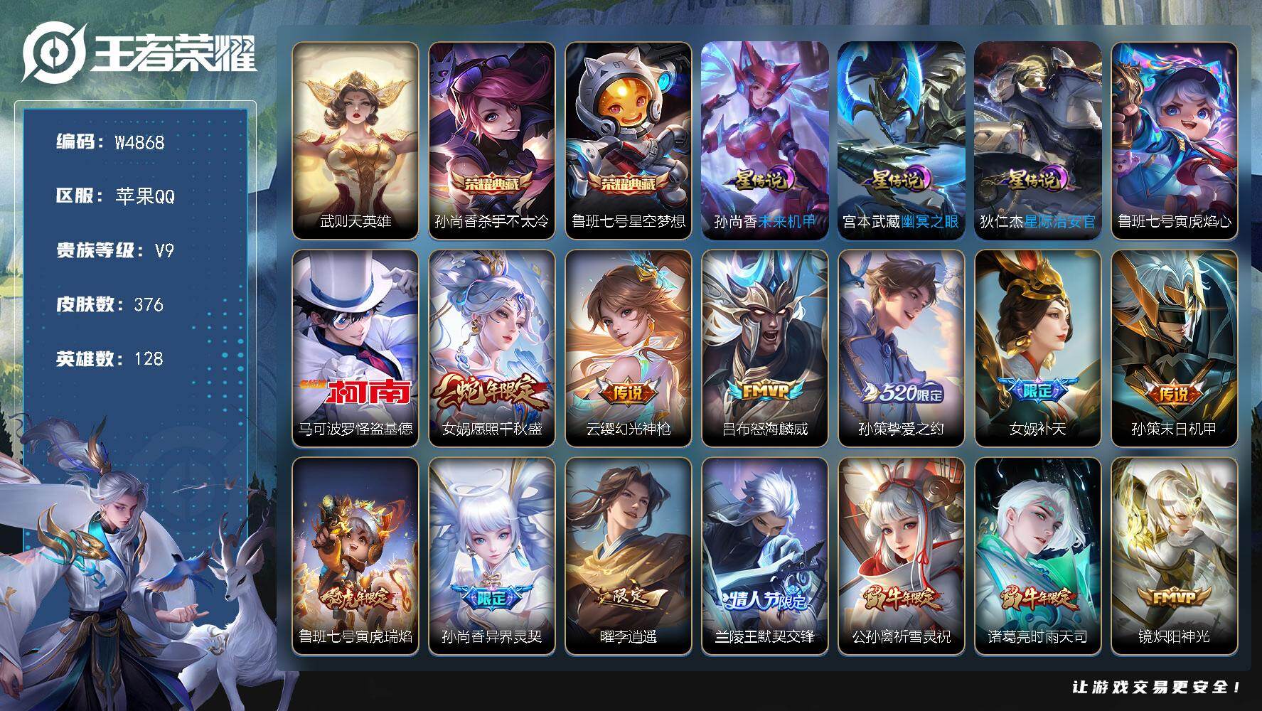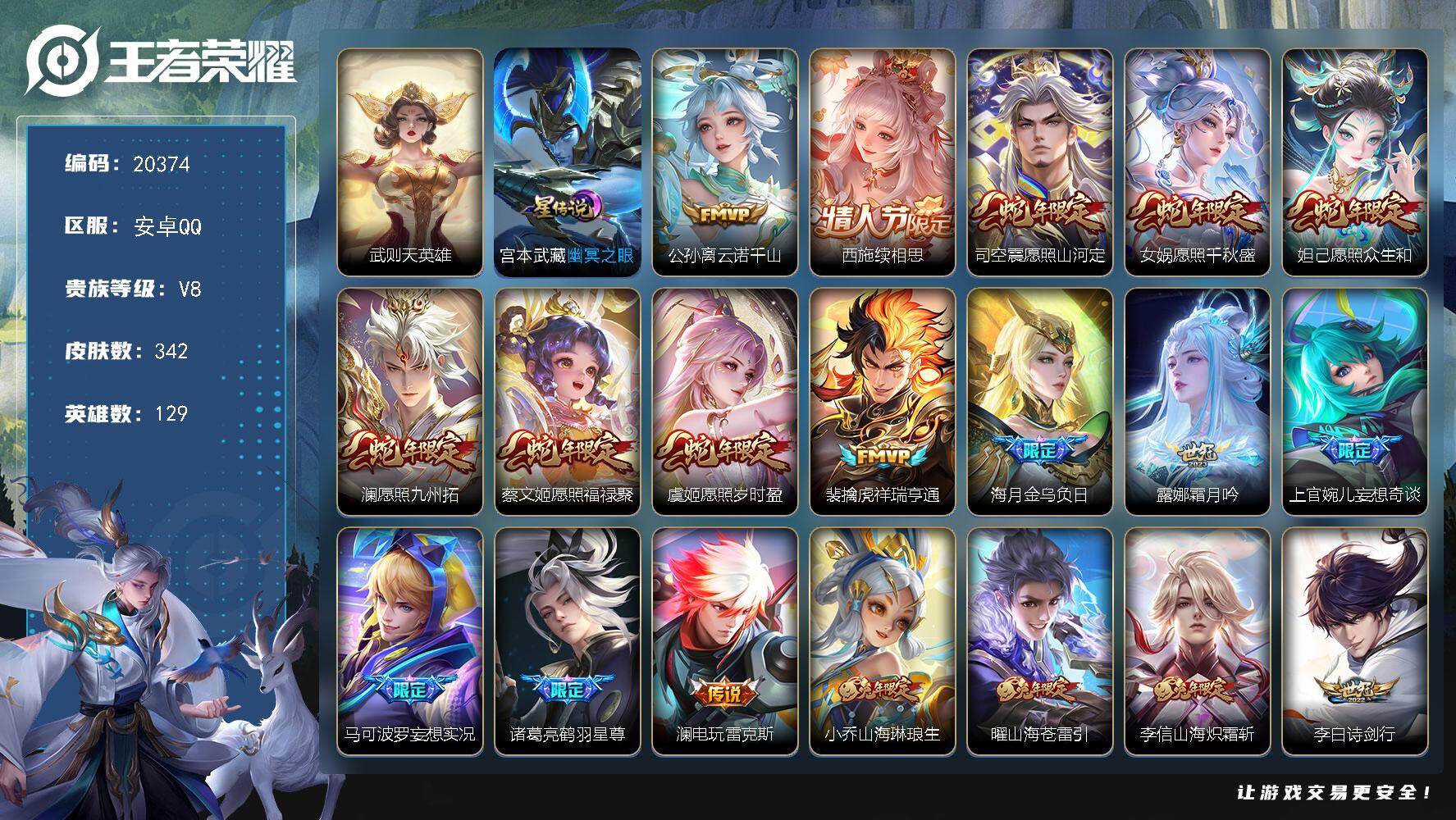 V4 皮肤94 英雄129 至尊星耀 其他皮肤99