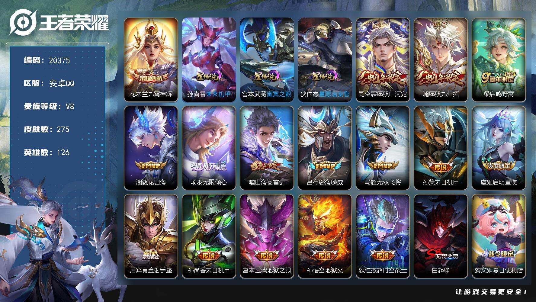 V7 皮肤275 英雄129 永恒钻石 荣耀典藏1 珍品传说2 星传说1 传说14 其他皮肤264