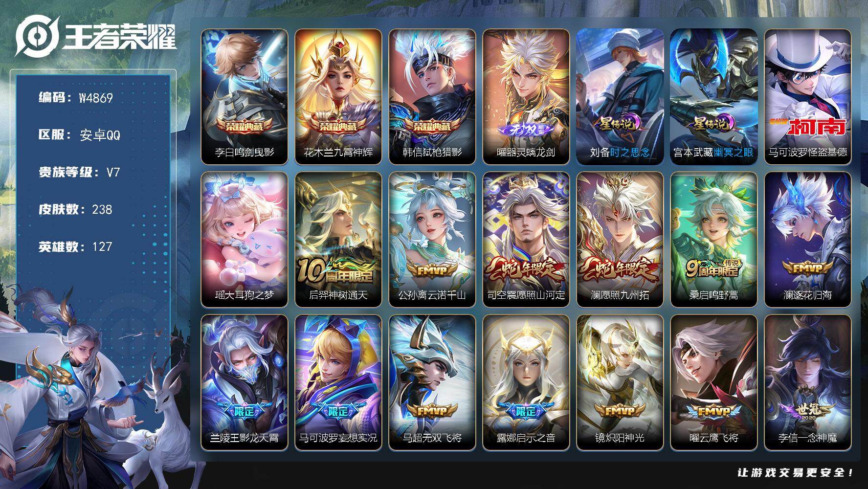 【W4869】【亮点:5.4K场次精品号-打野36段】安卓Q-可二次-贵7-1