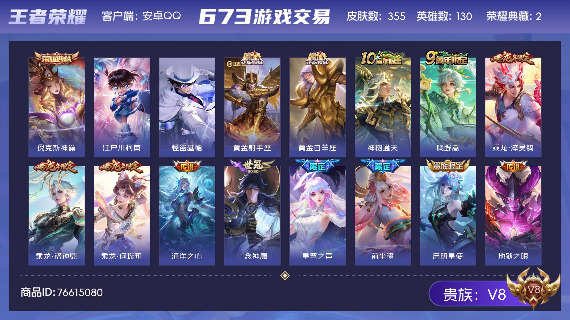 V8 皮肤355 英雄130 至尊星耀 荣耀典藏2 珍品传说2 传说24