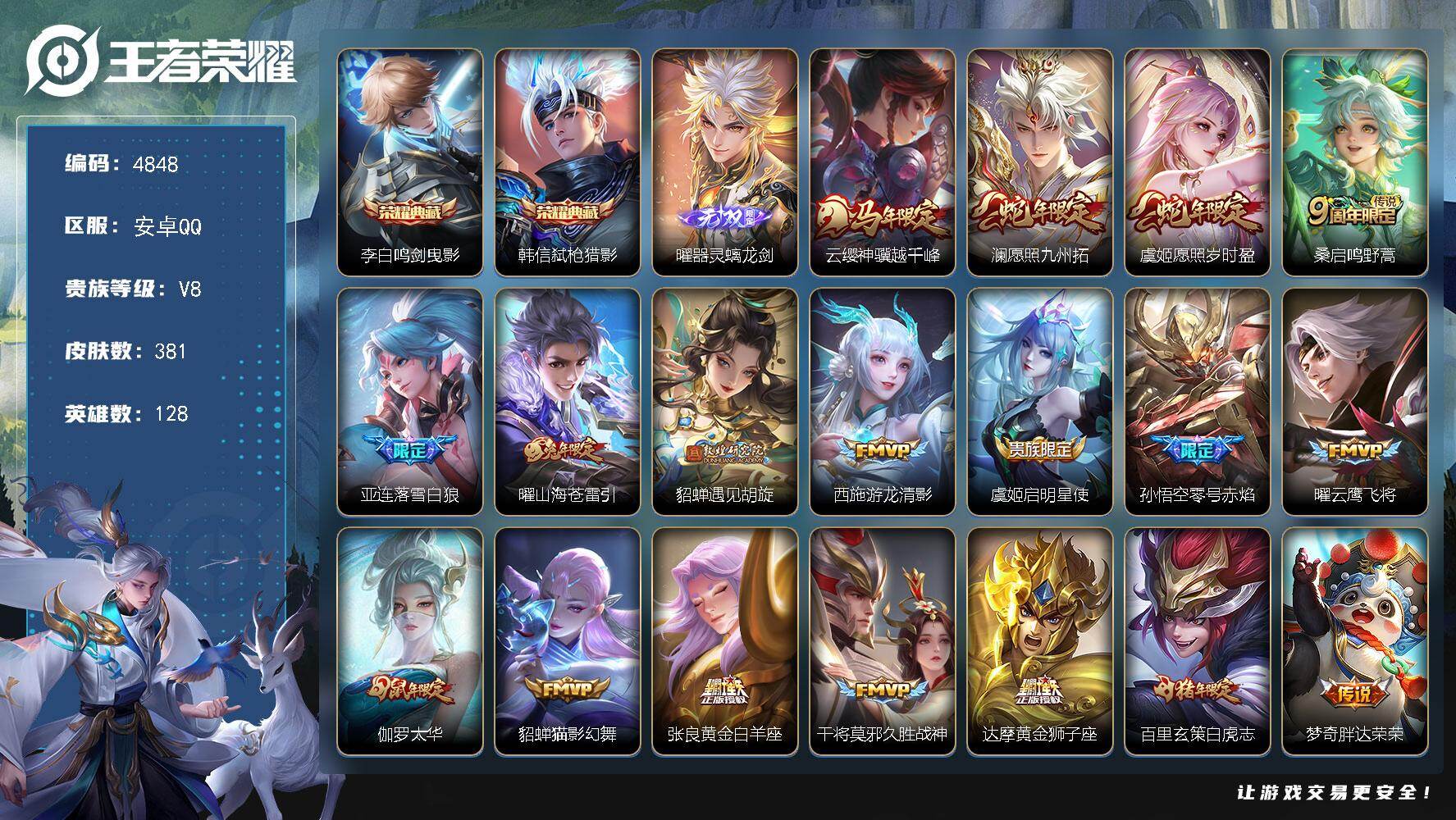 MWZ106346【v8 128英雄275皮肤1典藏1无双1珍品16传说1星