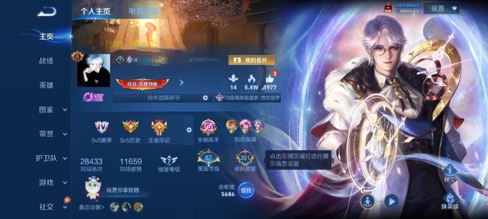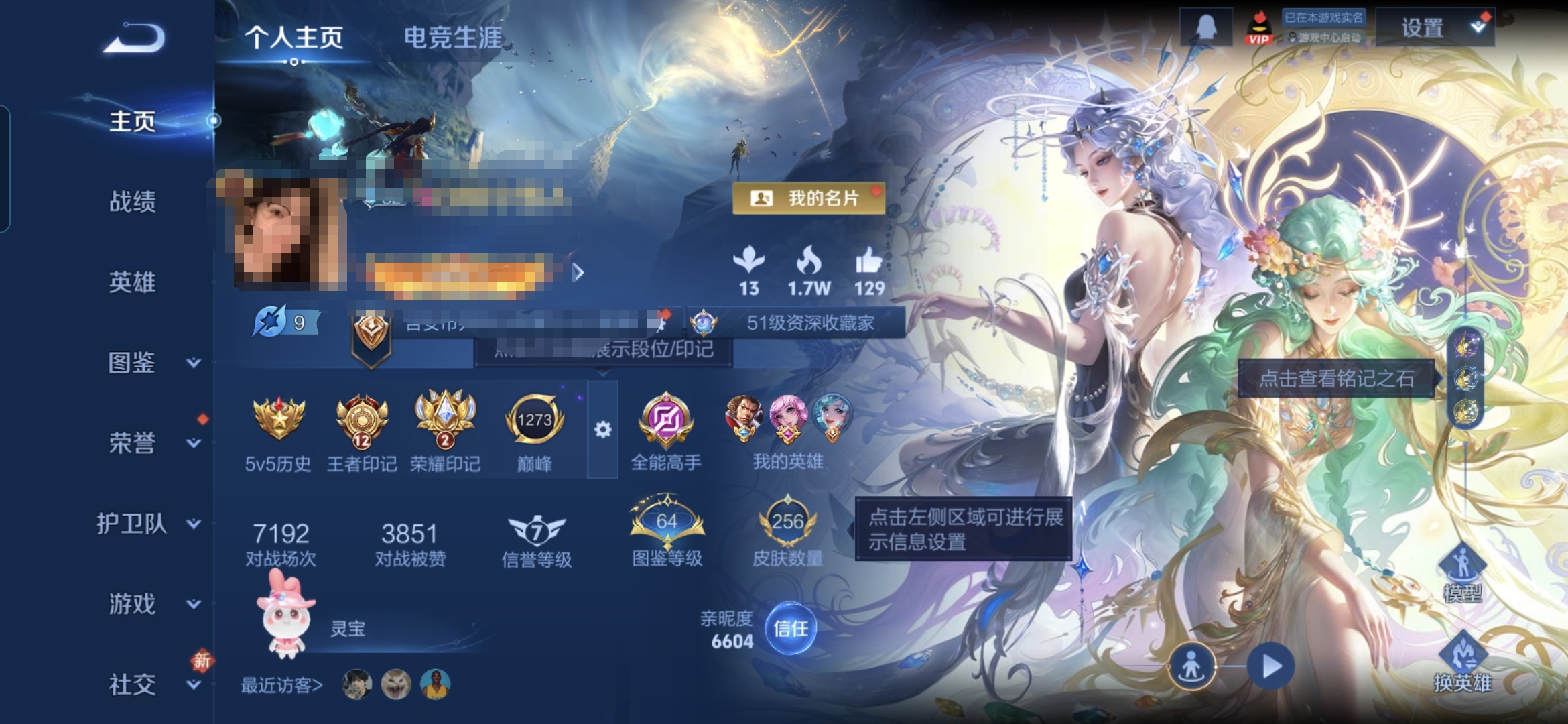 实名: 可修改 贵族等级: V9 英雄数: 114 皮肤数: 161 传说皮: