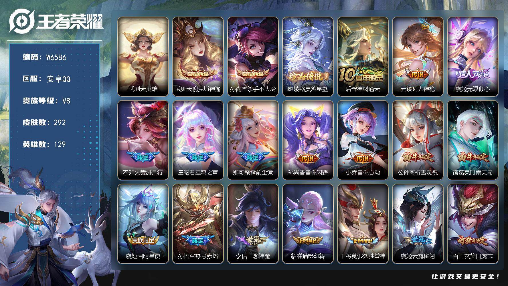 【W6586】质量女号-293幸运值-安卓Q区-可二次-贵8-129英雄-29