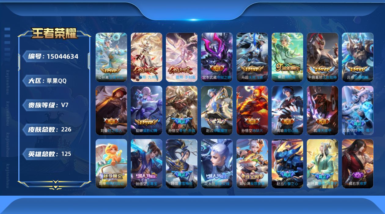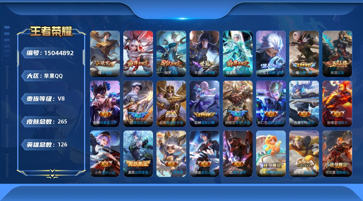 苹果Q-V8-永恒钻石II段位-126英雄-242皮肤-1典藏皮肤-2珍品传说