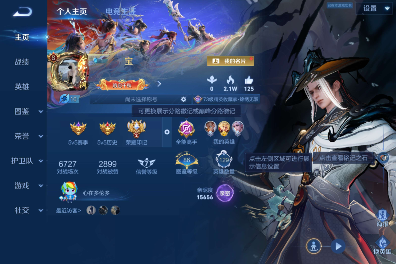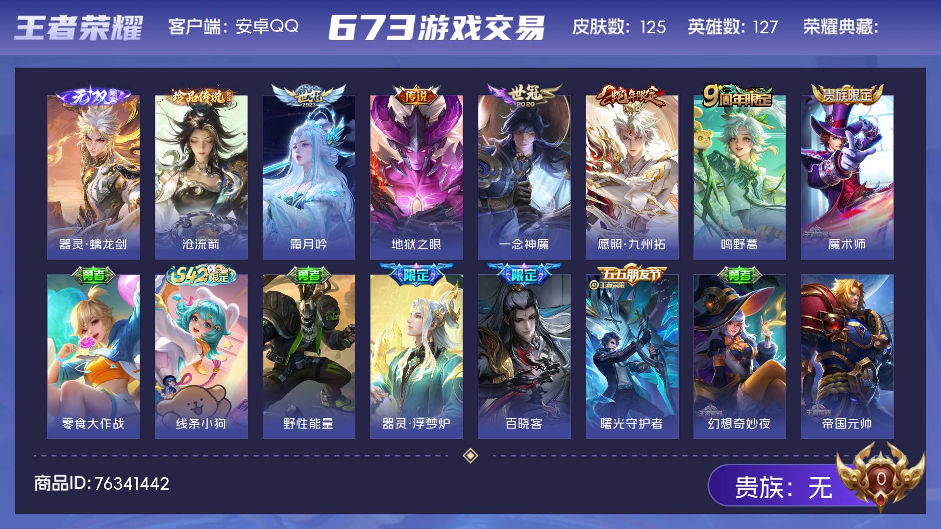 皮肤125 英雄127 至尊星耀 无双皮肤1 珍品传说1 传说5