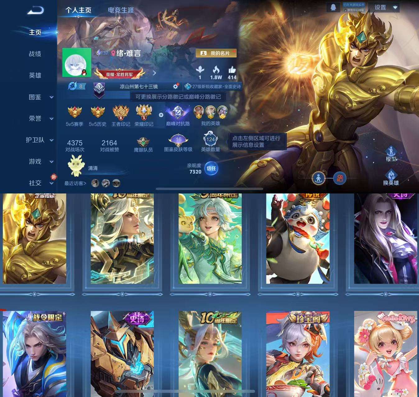 可二次 -V7-荣耀王者-124英雄-211皮肤-0典藏-0无双