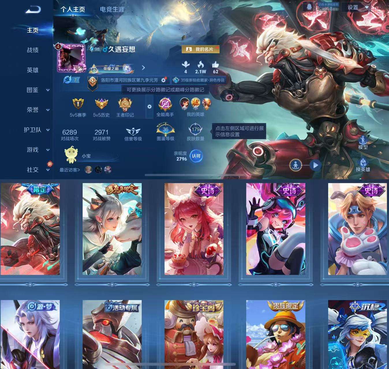 179皮肤3传说40史诗51限定10王者印记