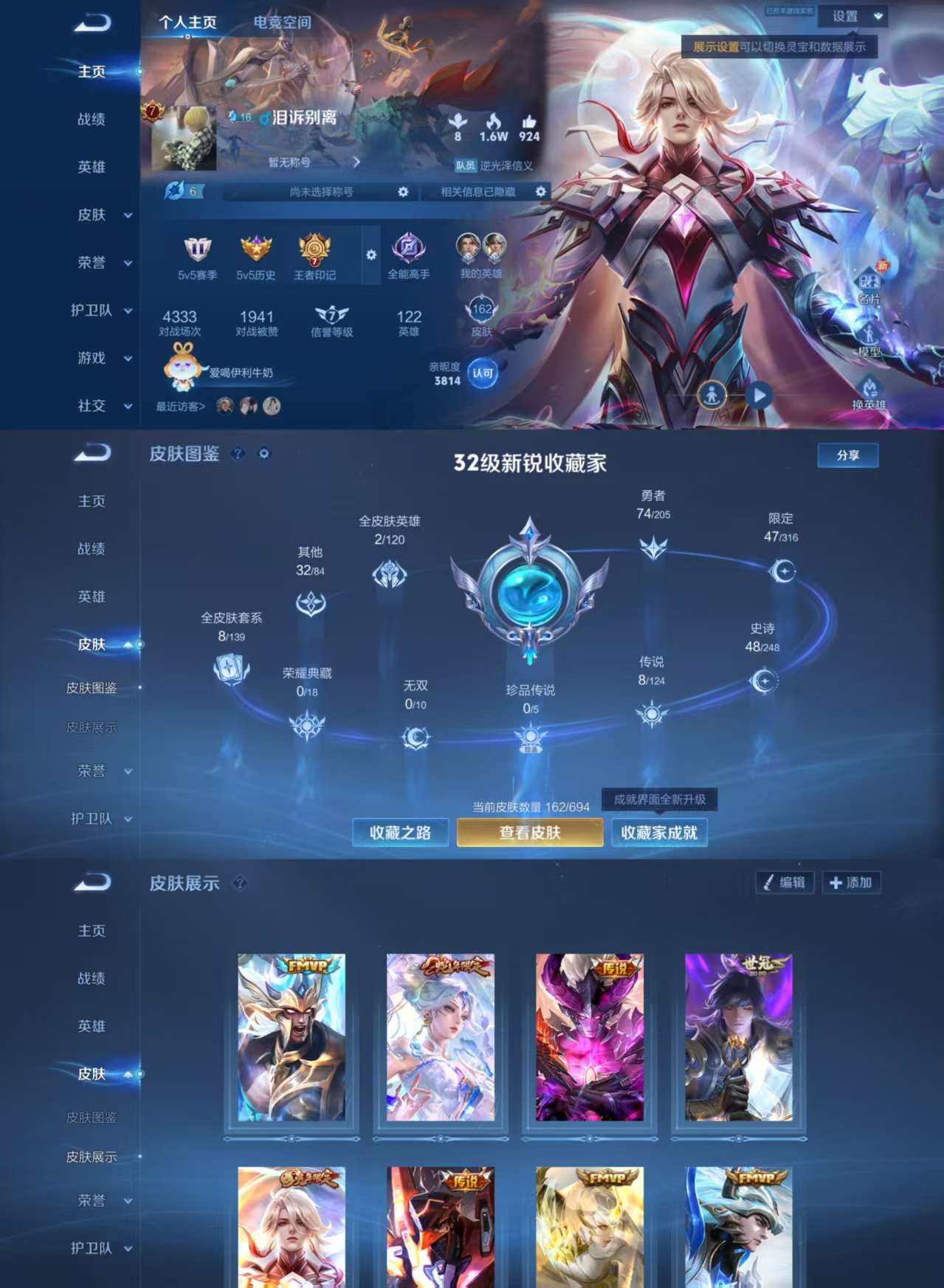 133皮肤1典藏2传说29史诗44限定