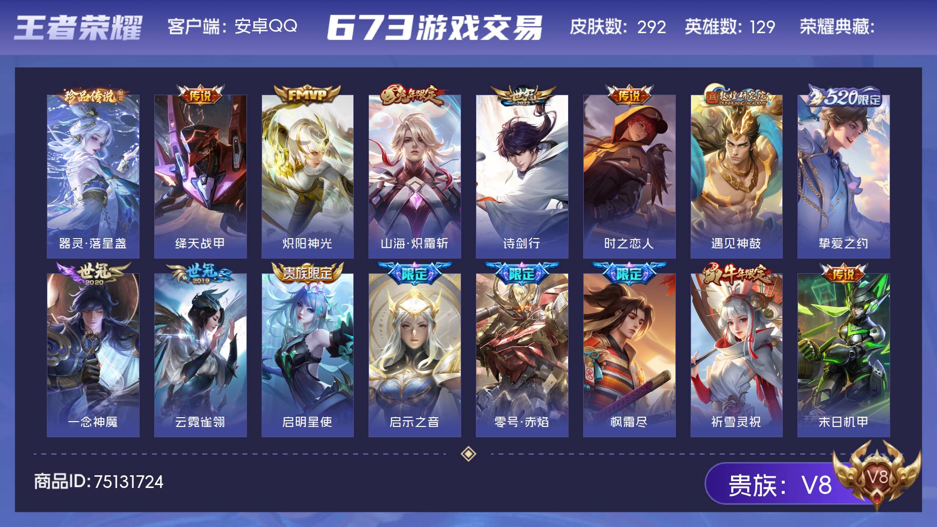 皮肤292 英雄129 至尊星耀 珍品传说1 传说24 其他皮肤273-皮肤292 英雄129 至尊星耀 珍品传说1 传说24 其他皮肤273-安卓QQ 皮肤292 英雄129 至尊星耀 珍品传说1 传说24 其他皮肤273