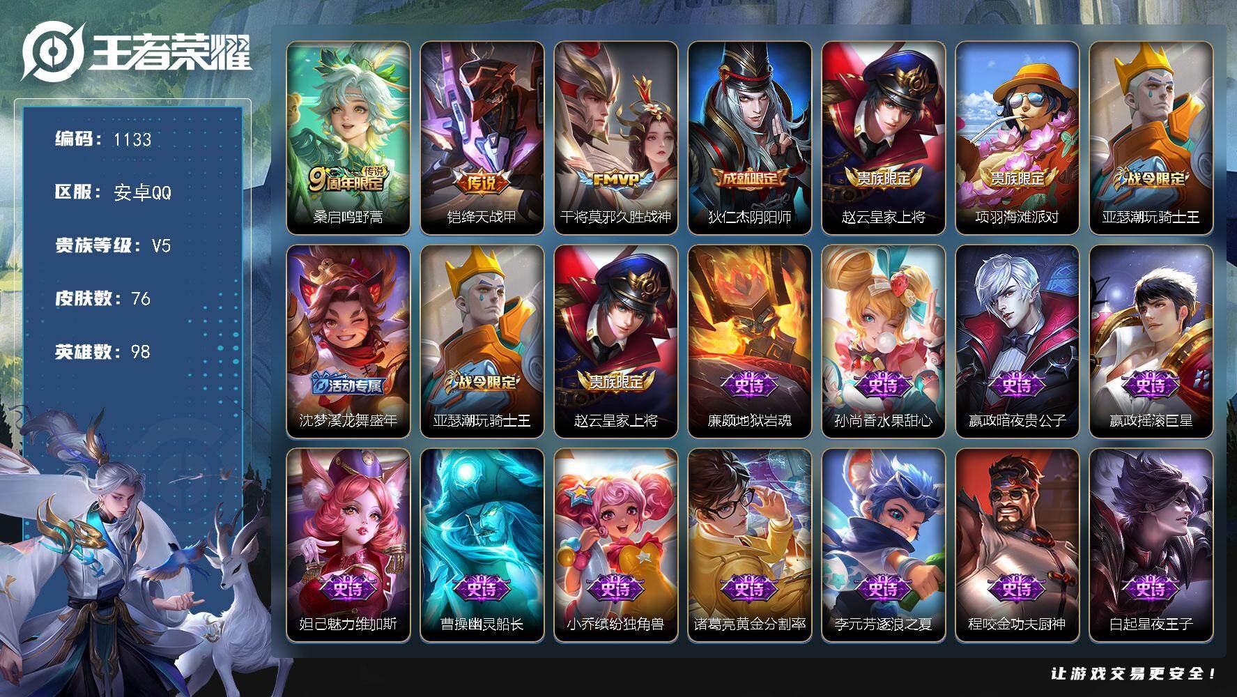 安卓Q-V5-76皮肤-3传说-20史诗-5按键-1100星币【传说】桑启鸣