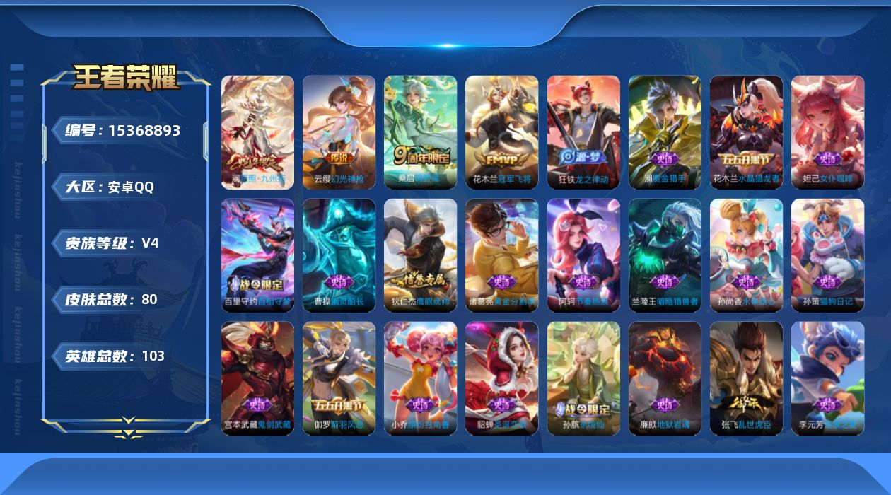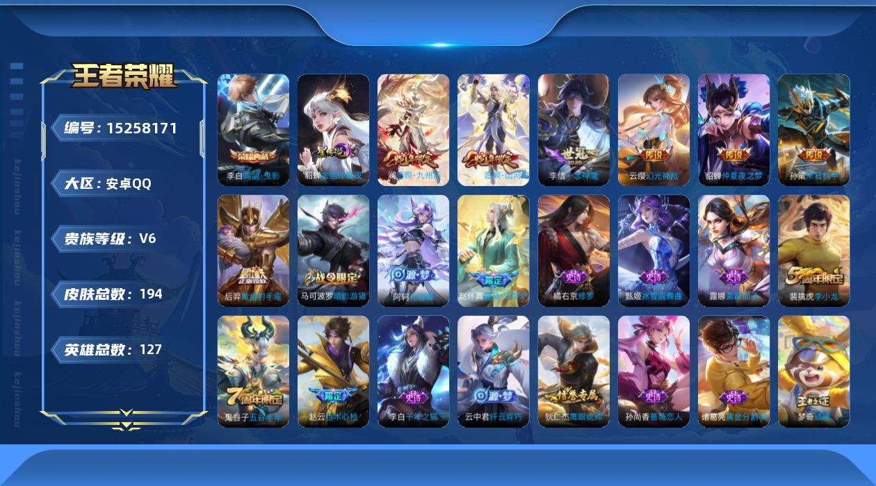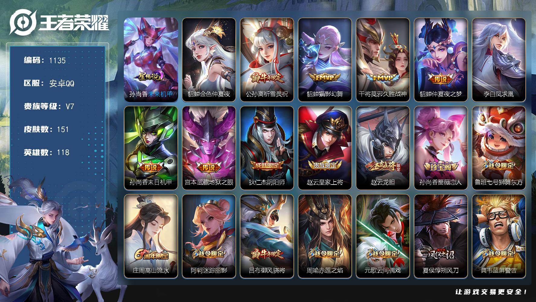 安卓Q-V7-151皮肤-7传说-44史诗-2星传说-夺宝267次【传说】公