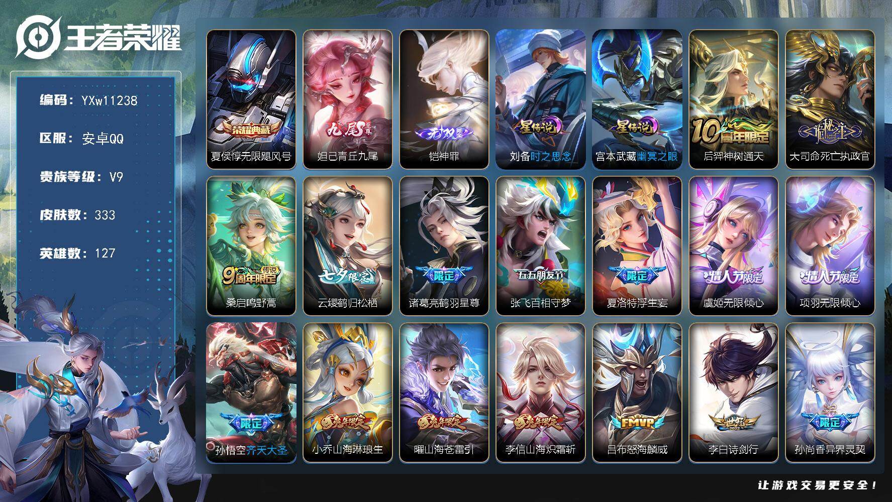 V9 皮肤401 英雄129 至尊星耀 荣耀典藏3 珍品传说2 星传说4 传说26 其他皮肤374