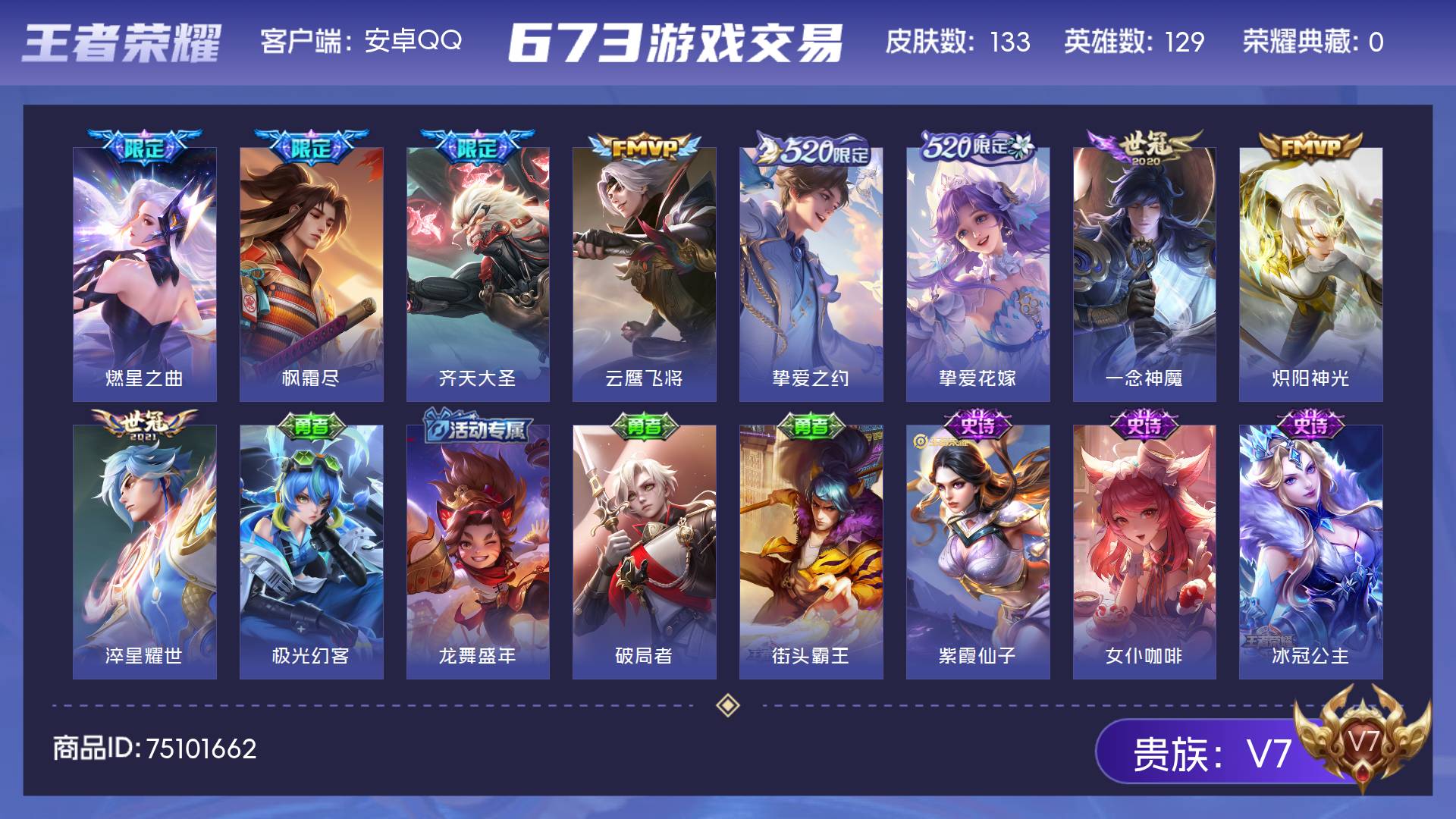 V7 皮肤133 英雄129 荣耀王者 传说9 其他皮肤131