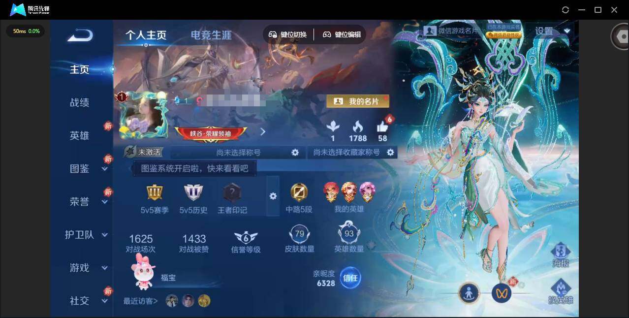 实名: 可修改 贵族等级: V6 英雄数: 93 皮肤数: 79 珍品传说: