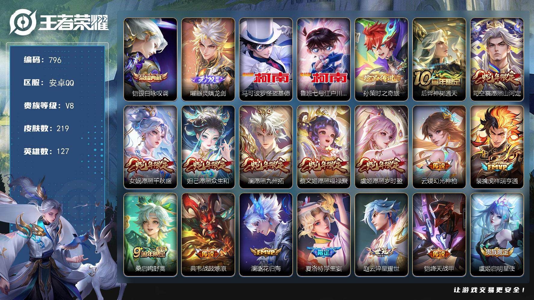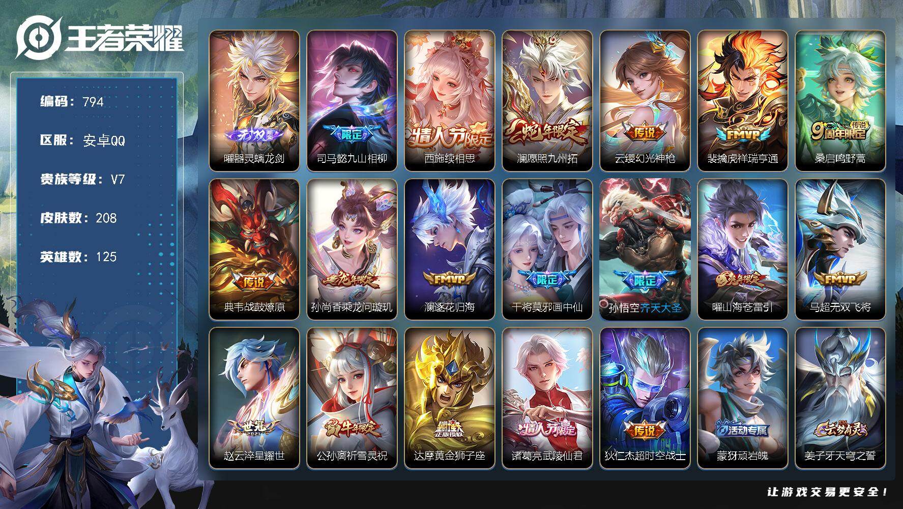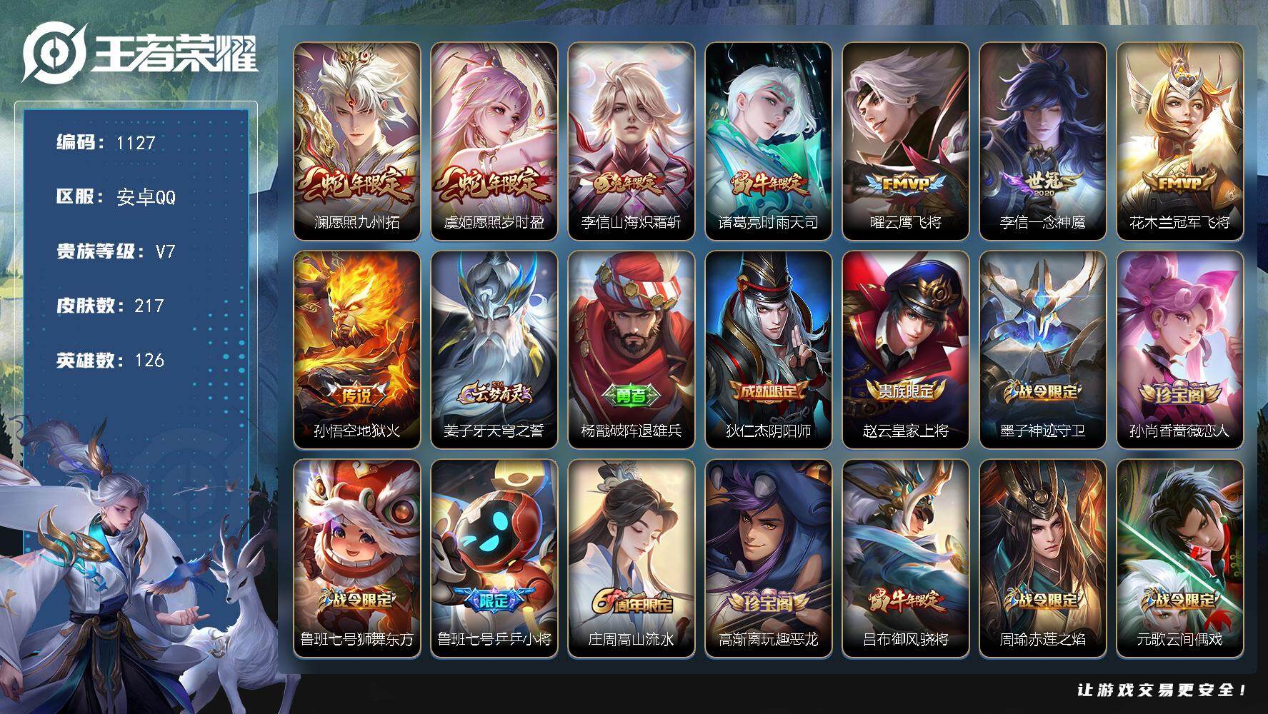 【106皮肤3传说q等级27可秒换绑】安卓QQ-125英雄
