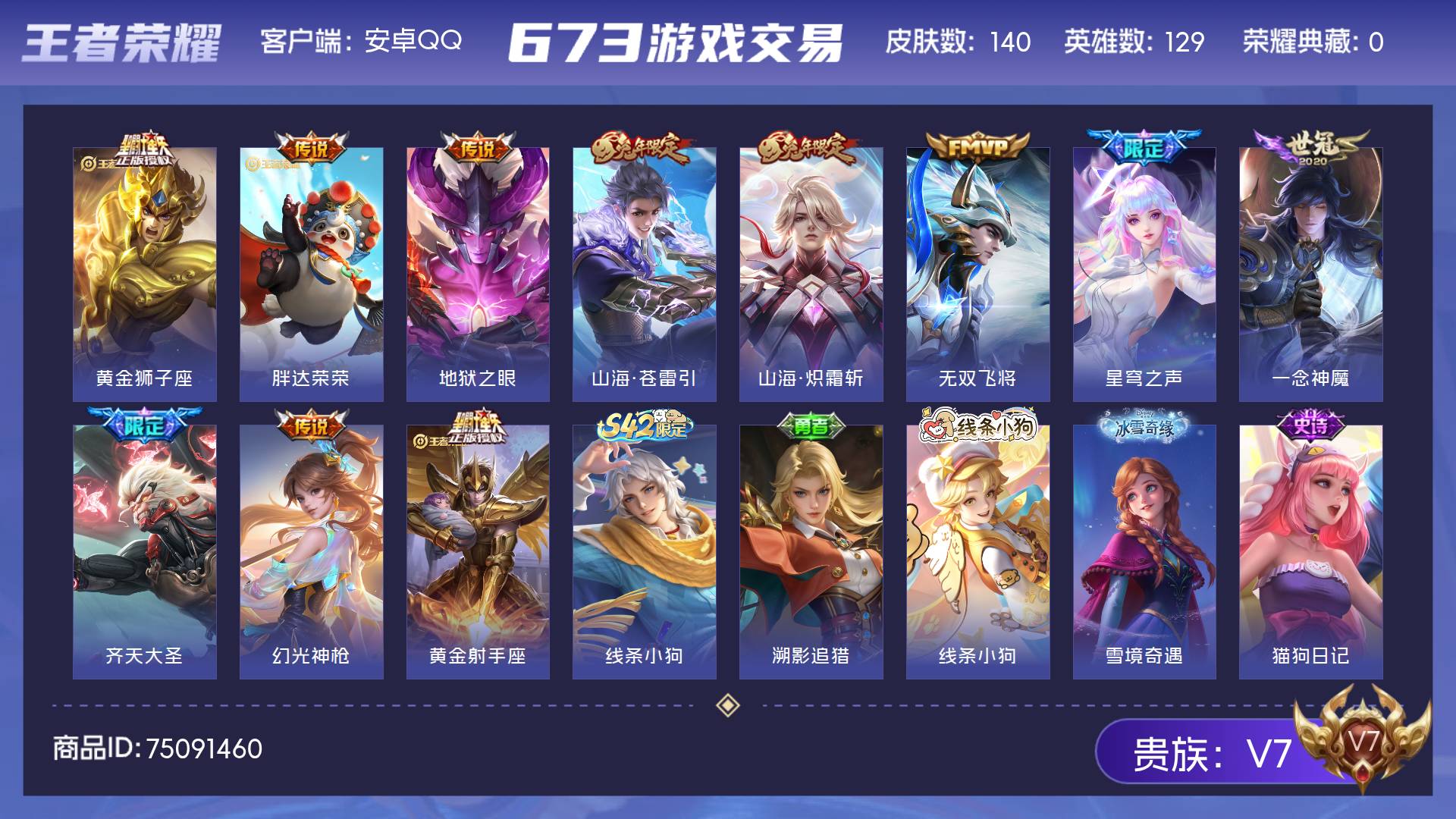 V7 皮肤140 英雄129 永恒钻石 传说11 其他皮肤136