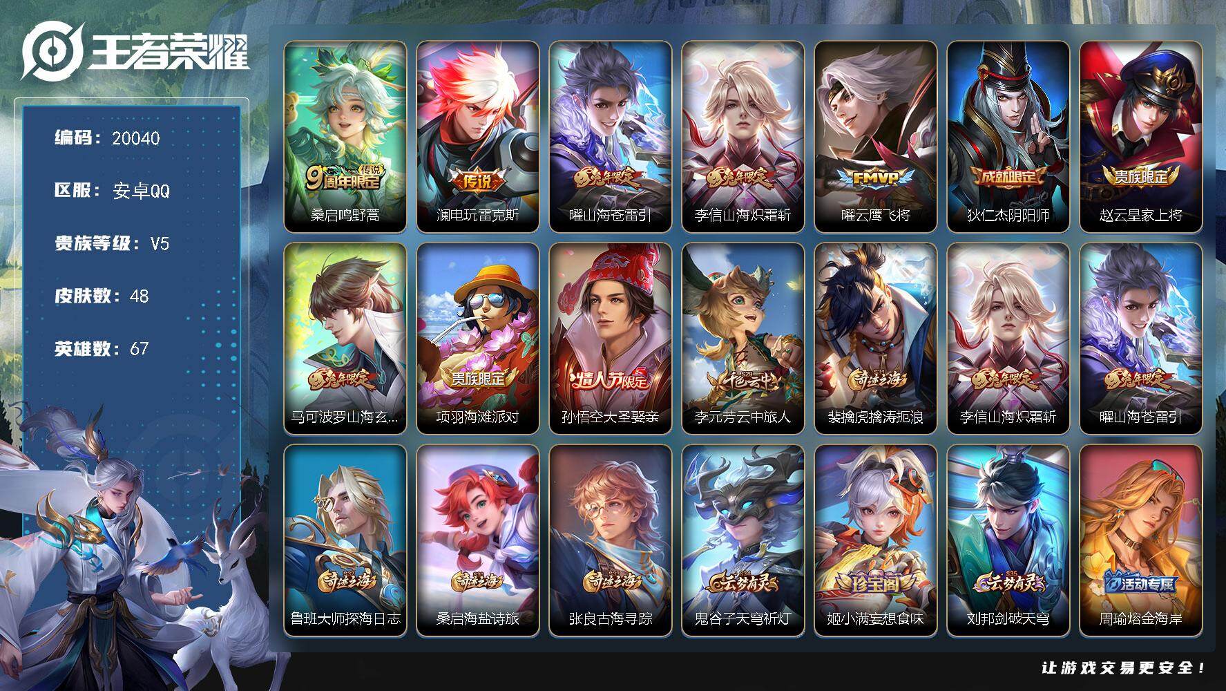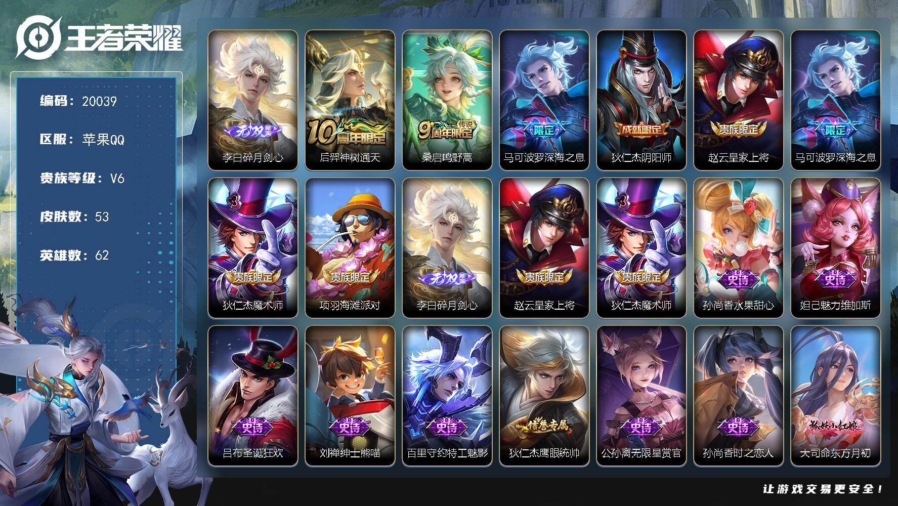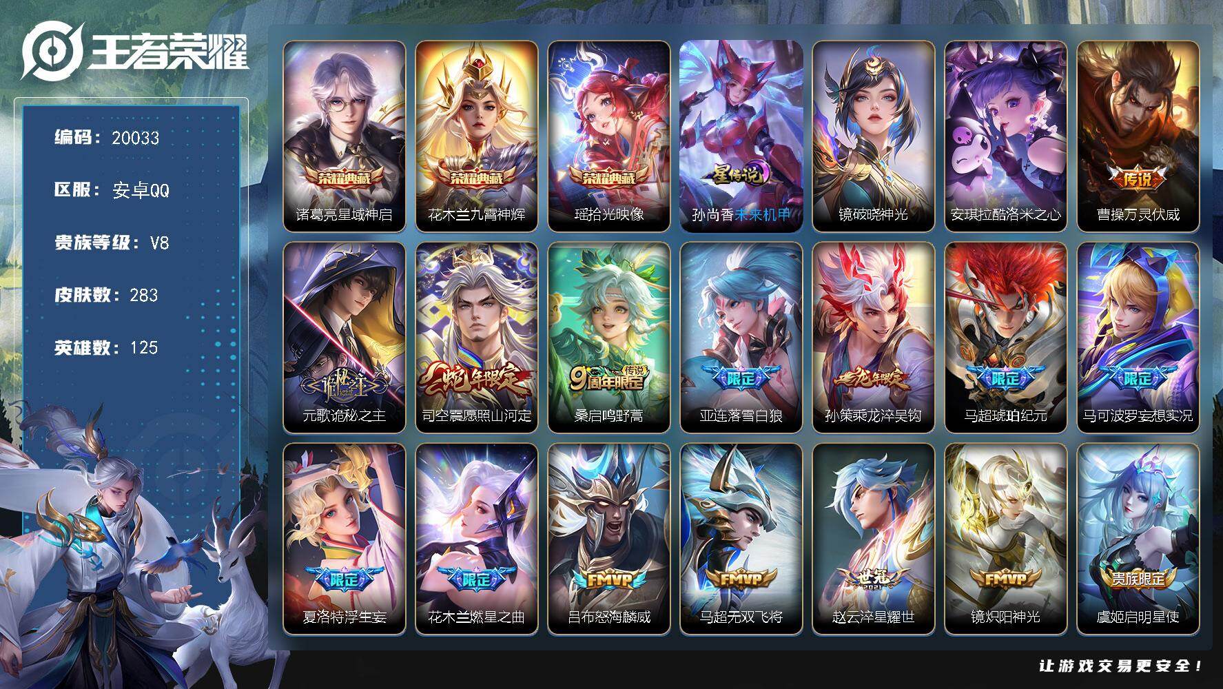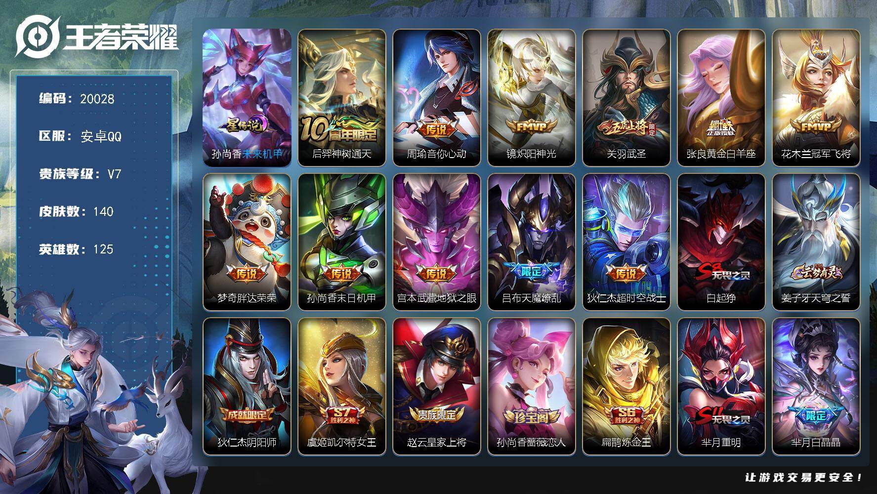 【W4782】安卓Q区-可二次-贵6-117英雄-132皮肤-4传说-39史诗