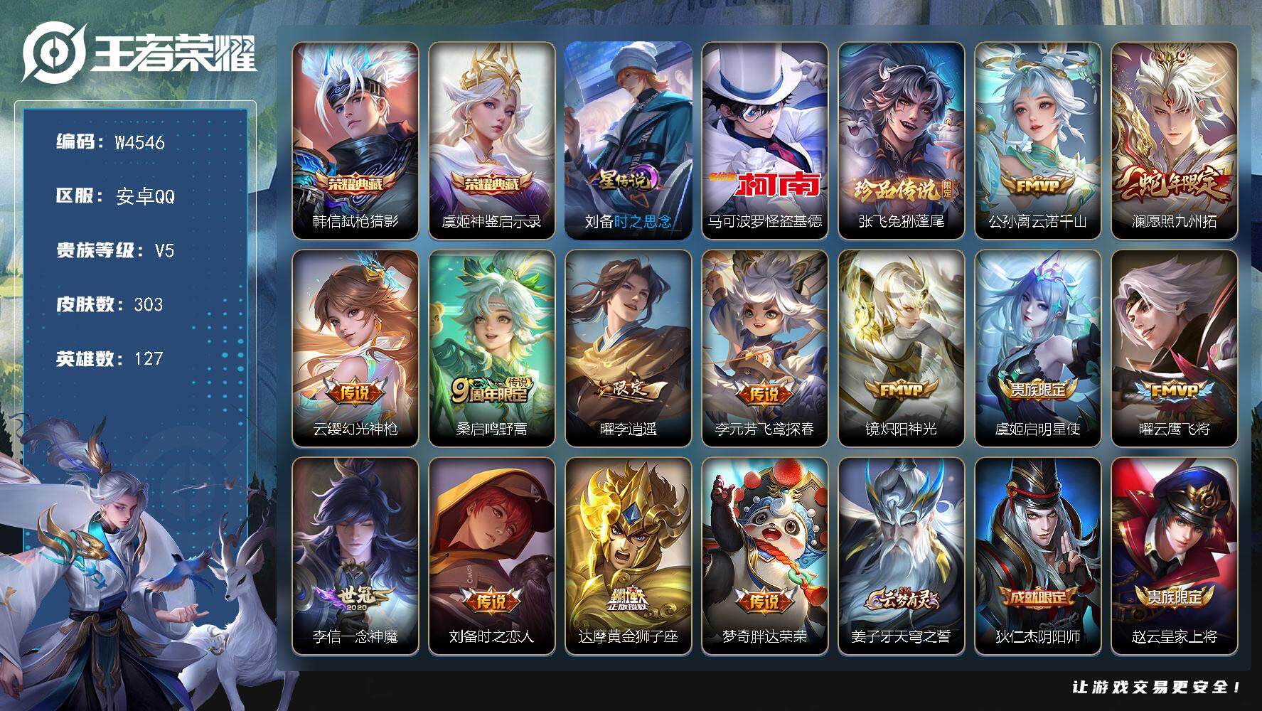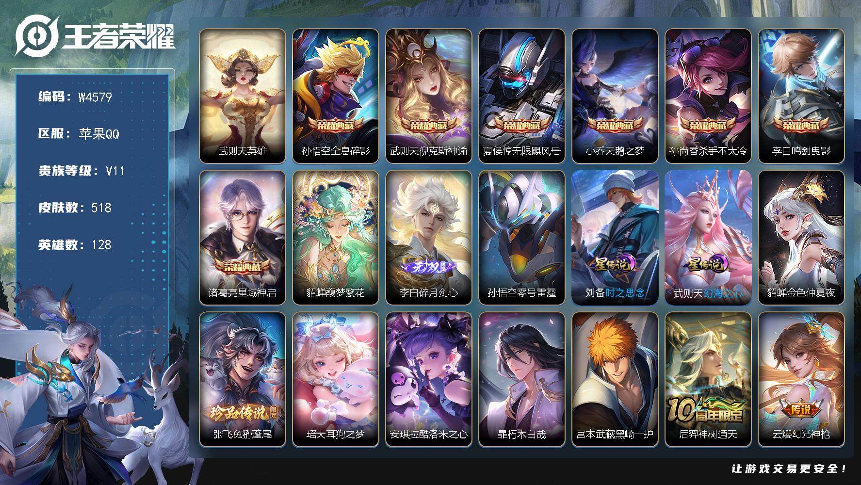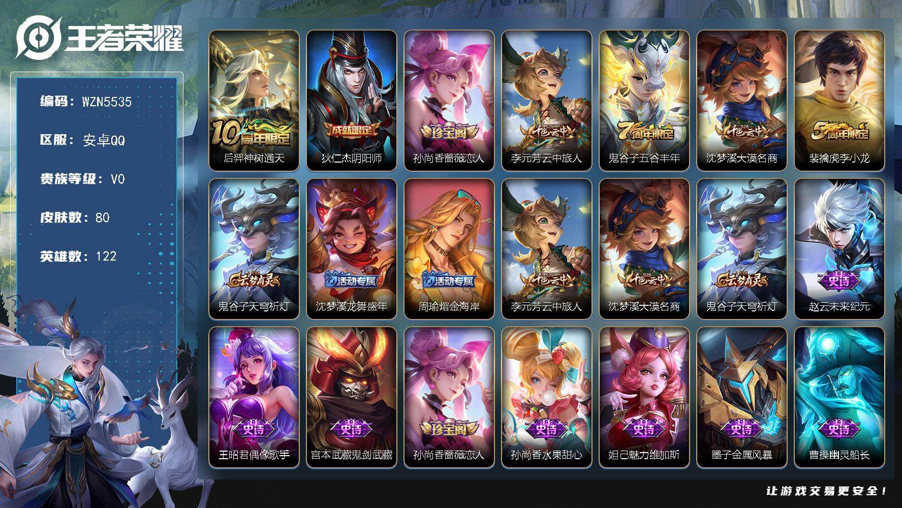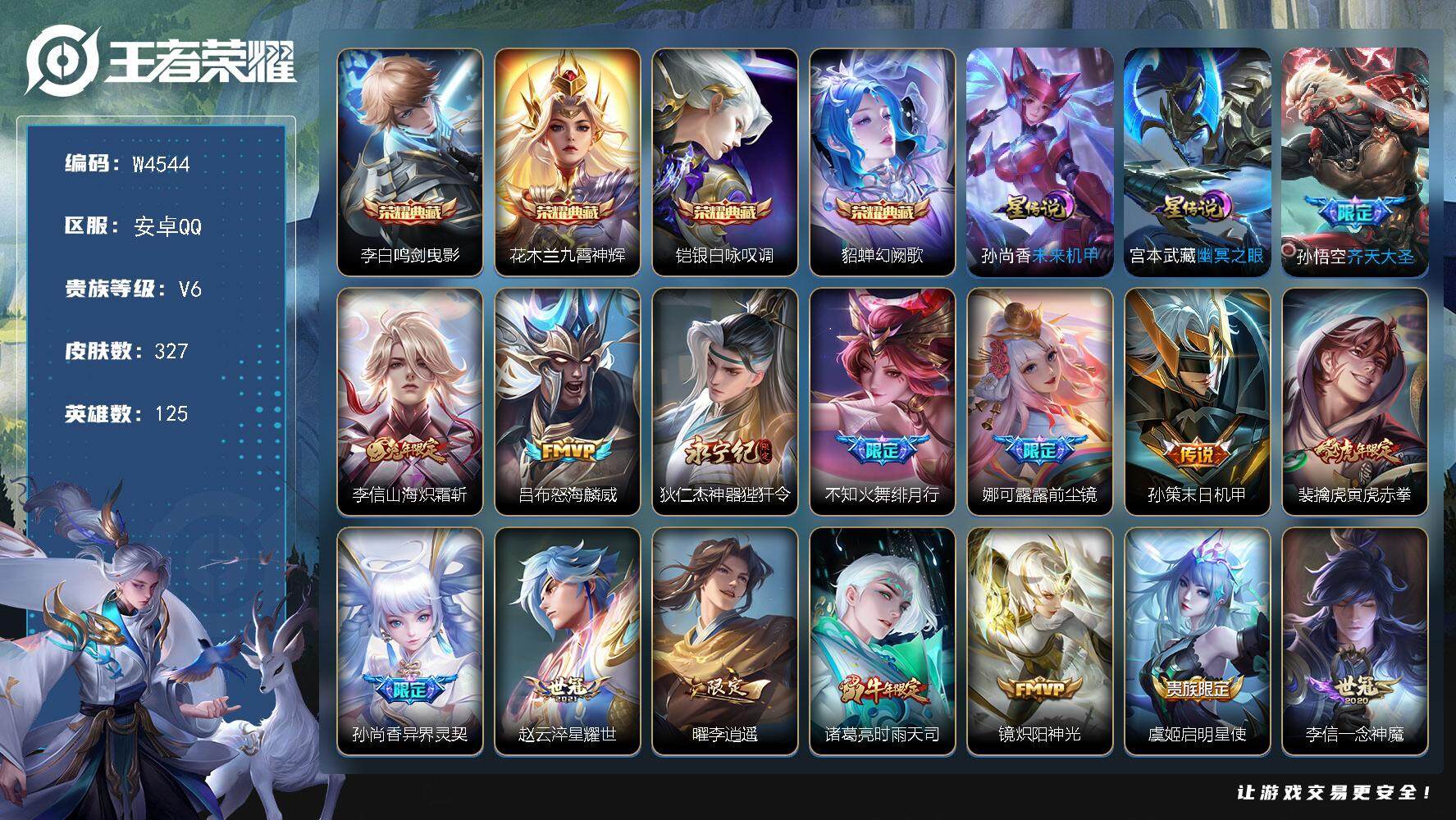 【W4577】满蛇年限定-发育路42段-安卓QQ-有二次-贵9-125英雄-4