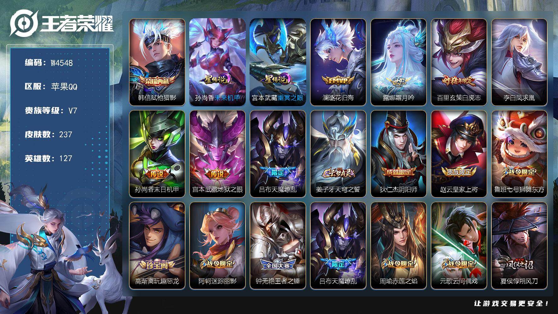 皮肤237 英雄127 至圣王者 荣耀典藏1 传说7 其他皮肤95-