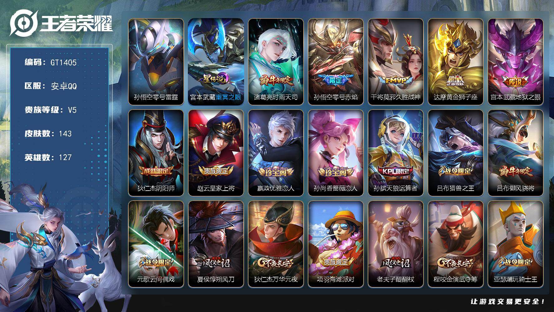 可换绑【精品小号推荐·多传说限定皮·落雪白狼·龙限孙尚香·鹤羽星尊·永宁纪狄仁