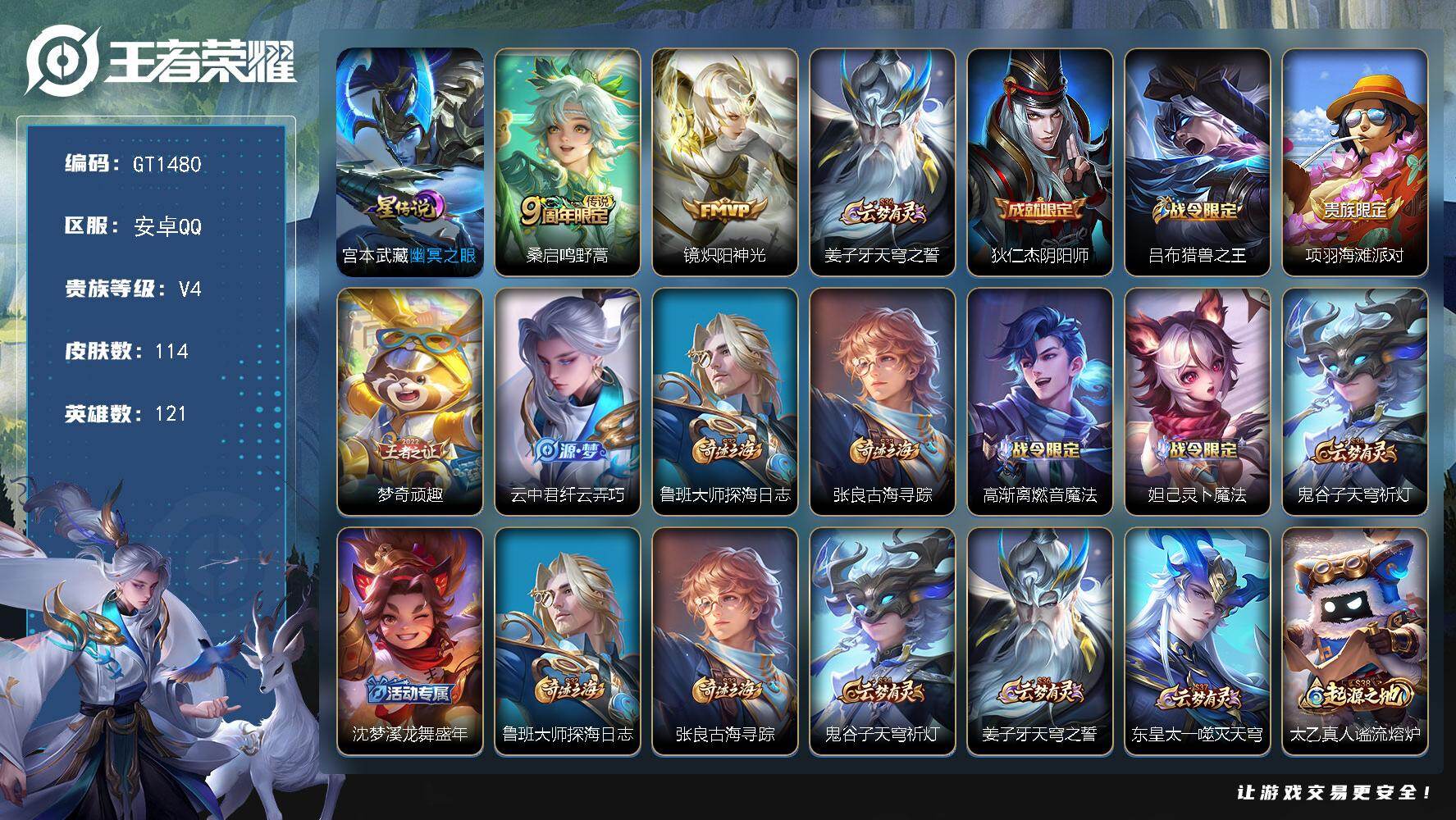 可换绑【高性价比v9账号推荐·打野49段·4金标·万战省2玄策·无双曜·3典藏