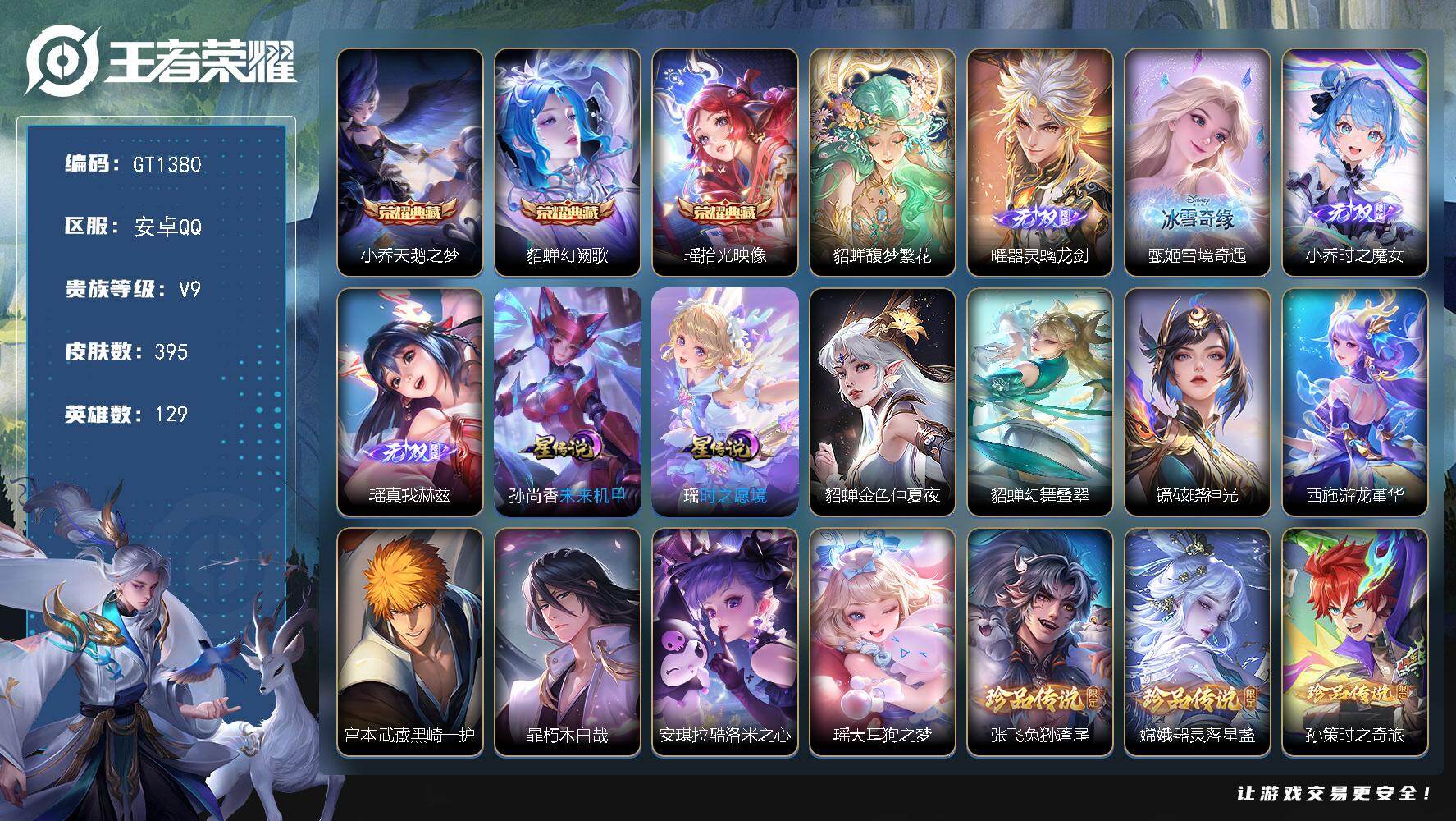 可换绑【V9高质量极品女号·瑶西施全皮·貂蝉珍品无双·4无双·3典藏·9珍品怪
