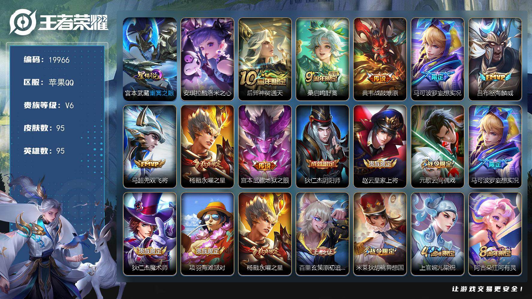 急出不墨迹!王者号带典藏皮肤,平台交易安全无忧,手慢无皮肤数
