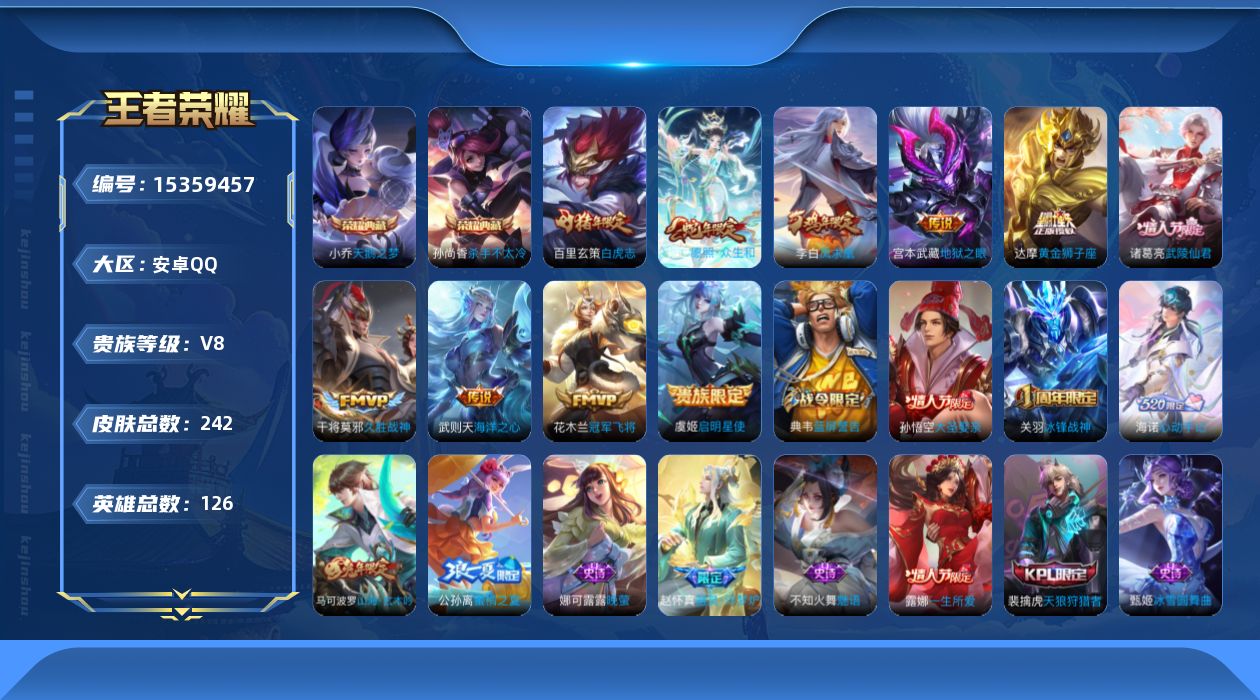 V7 皮肤239 英雄129 永恒钻石 荣耀典藏1 传说15 其他皮肤230