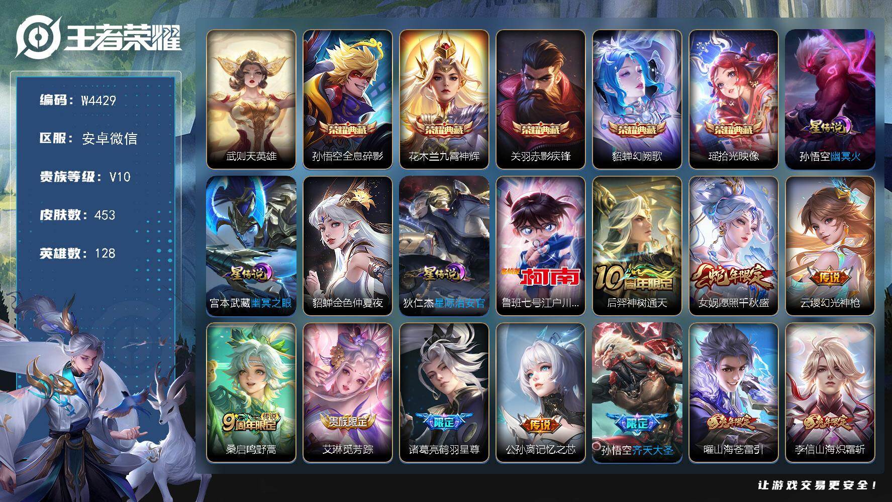 【W4429】安卓微信-可二次-贵10-128英雄-453皮肤-6典藏(武则天