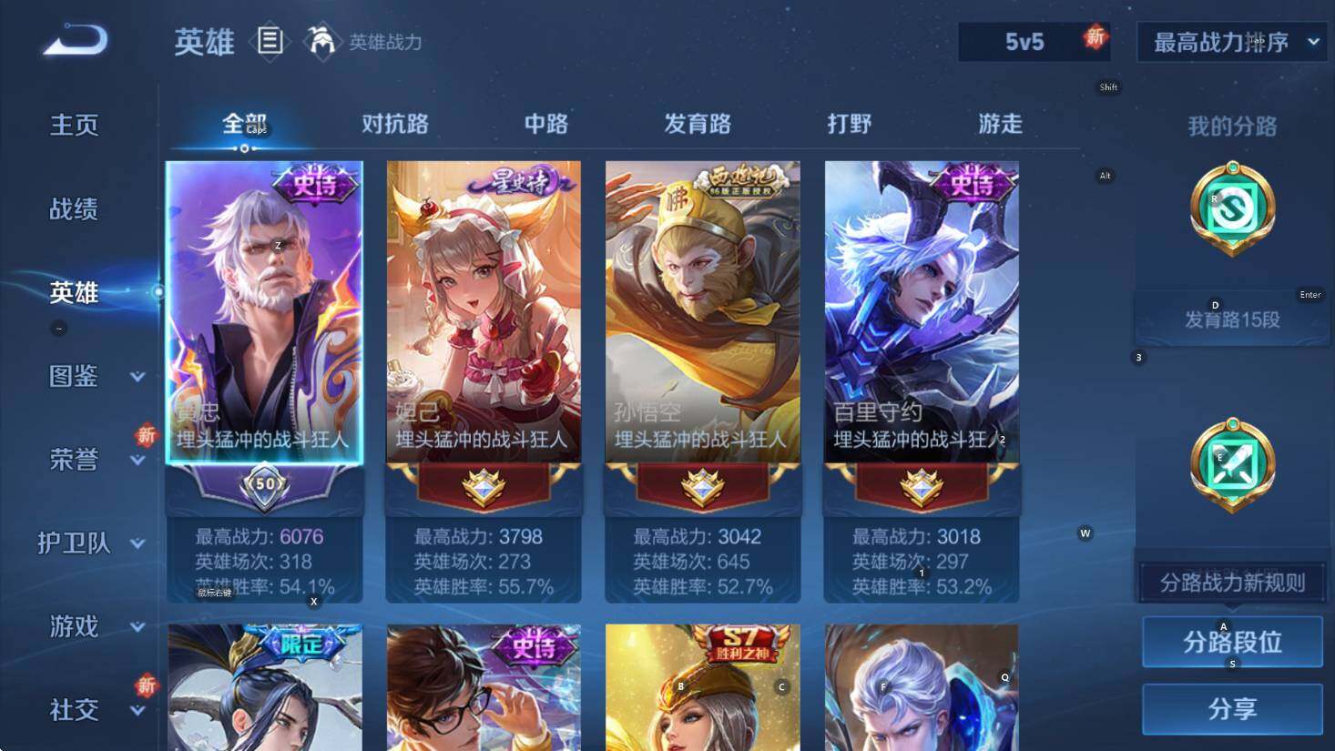 89.2评分85胜率12790战力金标云中君,英雄都是高胜率高评分