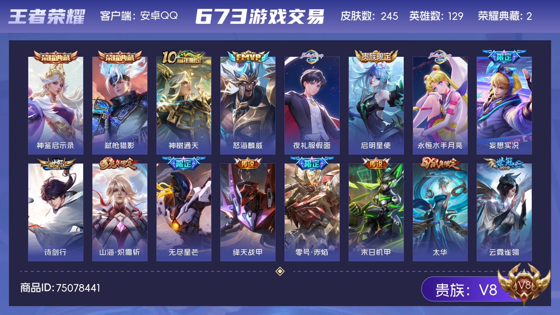 V8 皮肤245 英雄129 绝世王者 荣耀典藏2 传说17 其他皮肤233