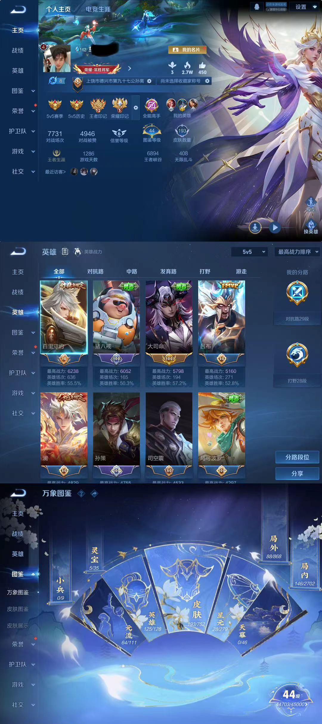荣耀王者-127英雄-350皮肤-1无双-3典藏-1珍品传说-29传说-108史诗