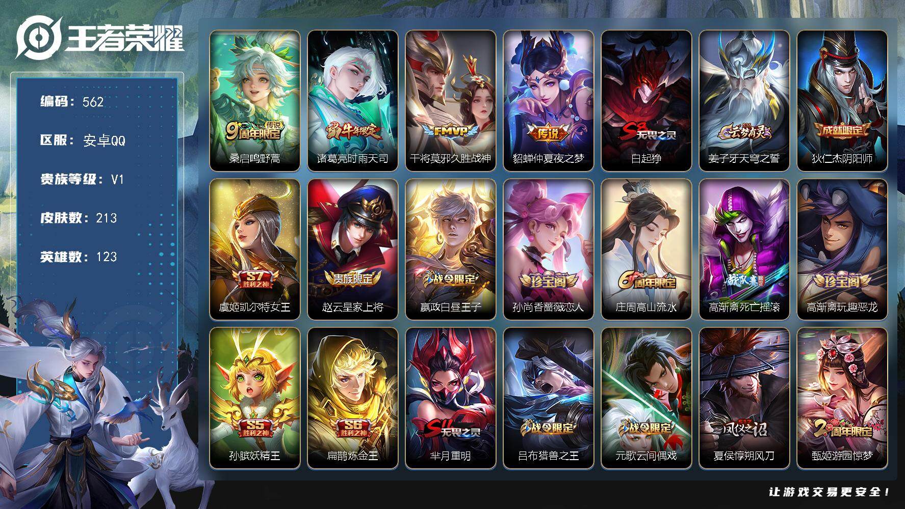 安卓Q-V1-永恒钻石I段位-123英雄-213皮肤-4传说-52史诗【传说