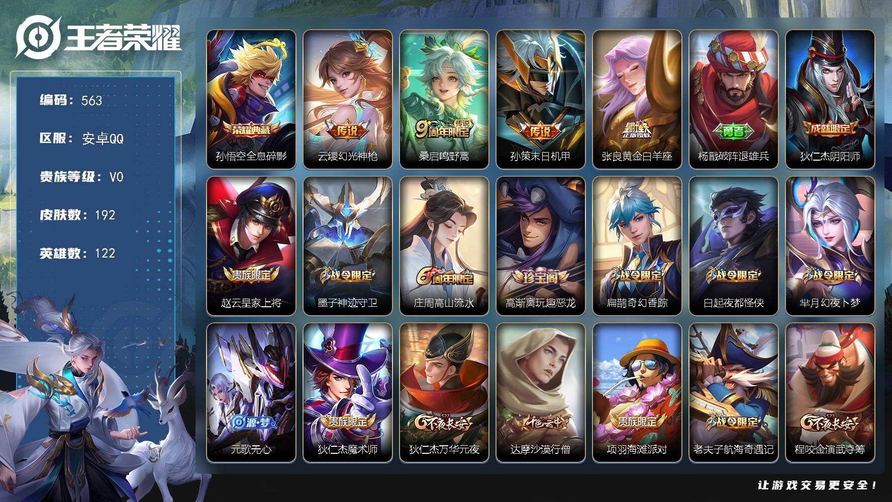 安卓Q-V0-最强王者段位-122英雄-192皮肤-1典藏皮肤-4传说-34史