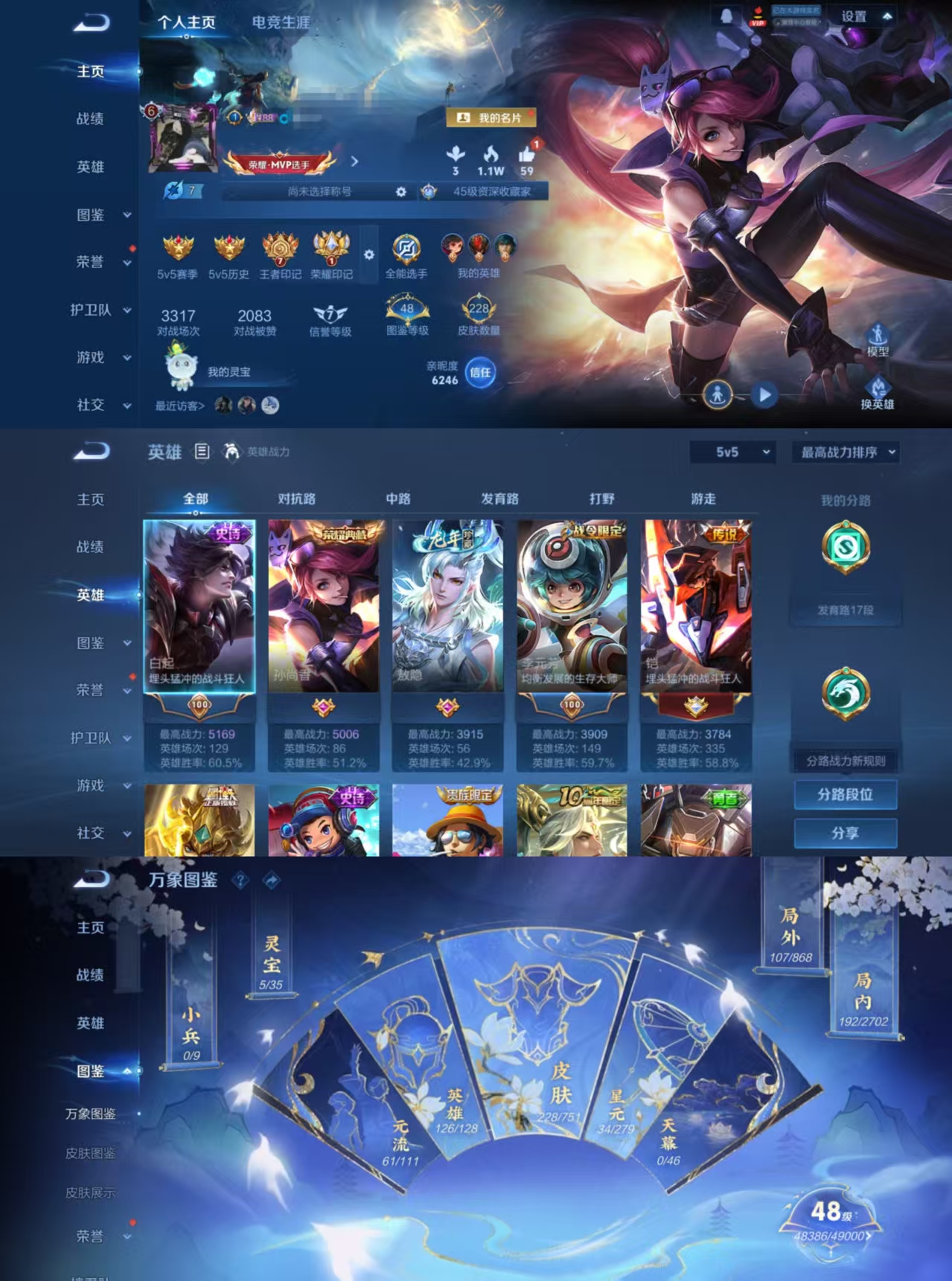 发育路46段 贵族4 百星印记 125英雄 134皮 1珍品 9传说 金标后羿 金标项羽 金标苍 金标鲁班大师 金标妲己