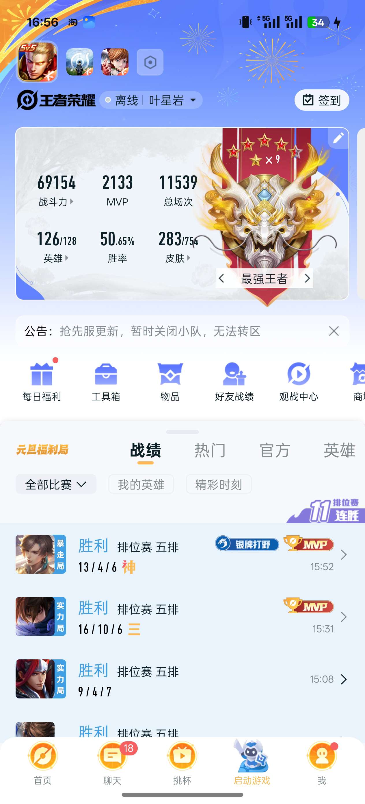 皮肤283 英雄126 非凡王者 荣耀典藏1 传说7 其他皮肤104-有吃鸡还有王者连体号