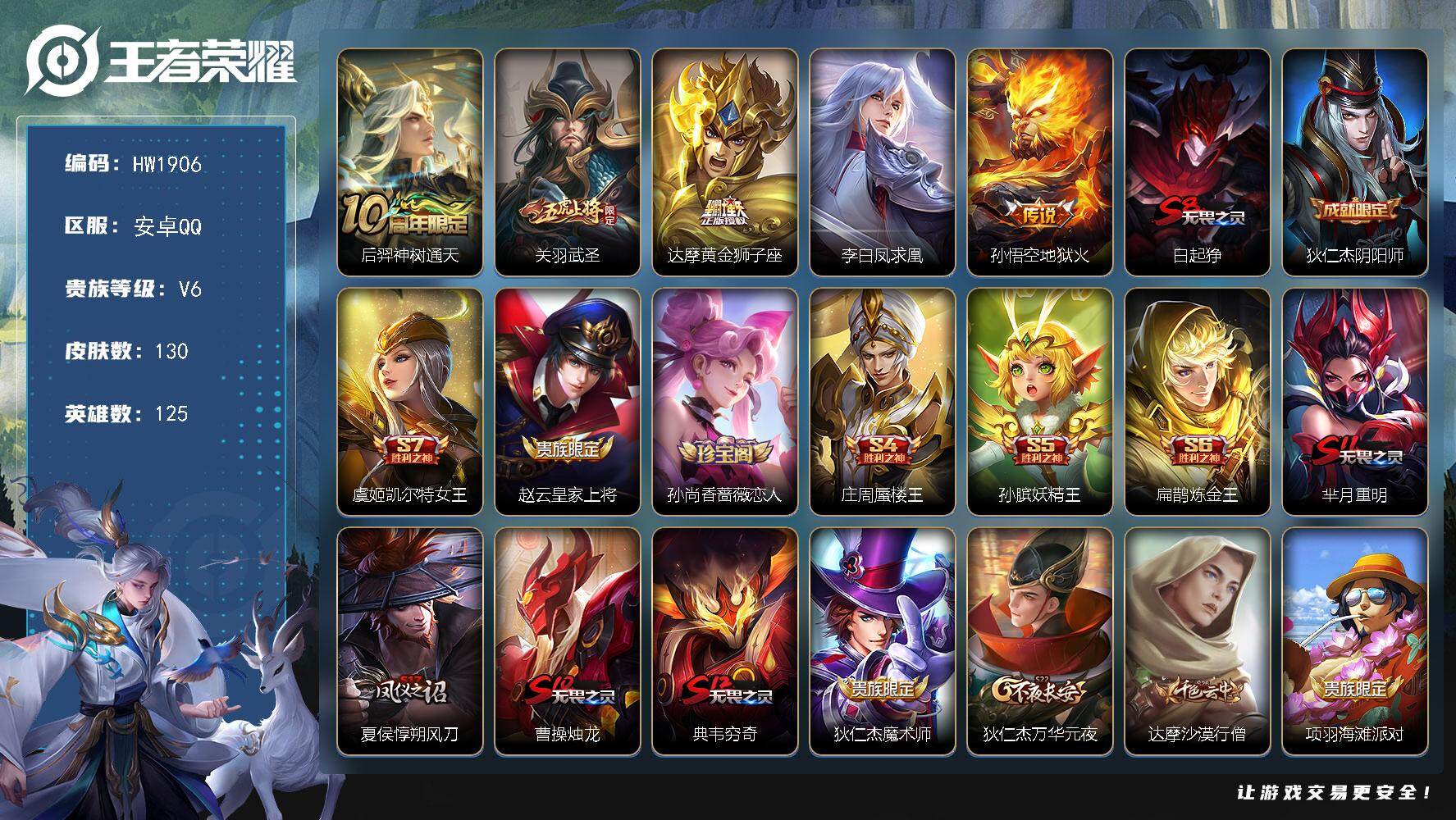 v7 1典藏 李逍遥 9传说-226皮肤-125英雄