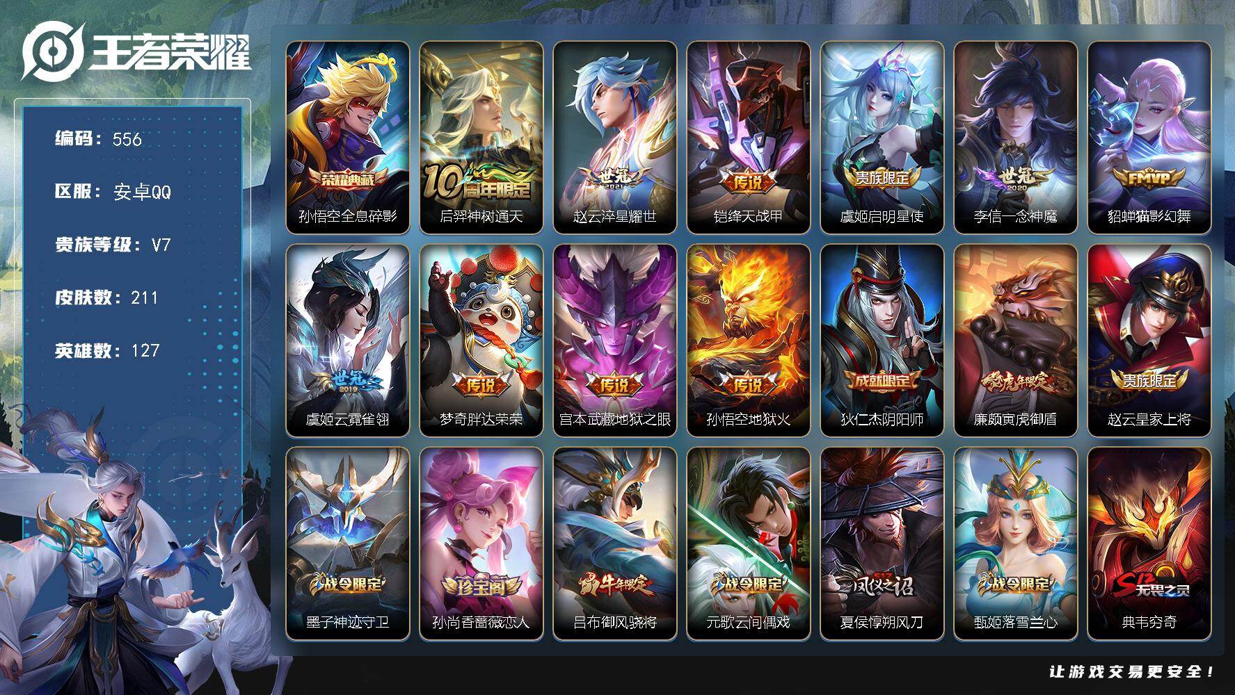 安卓Q-V7-至尊星耀V段位-127英雄-211皮肤-1典藏皮肤-10传说-5