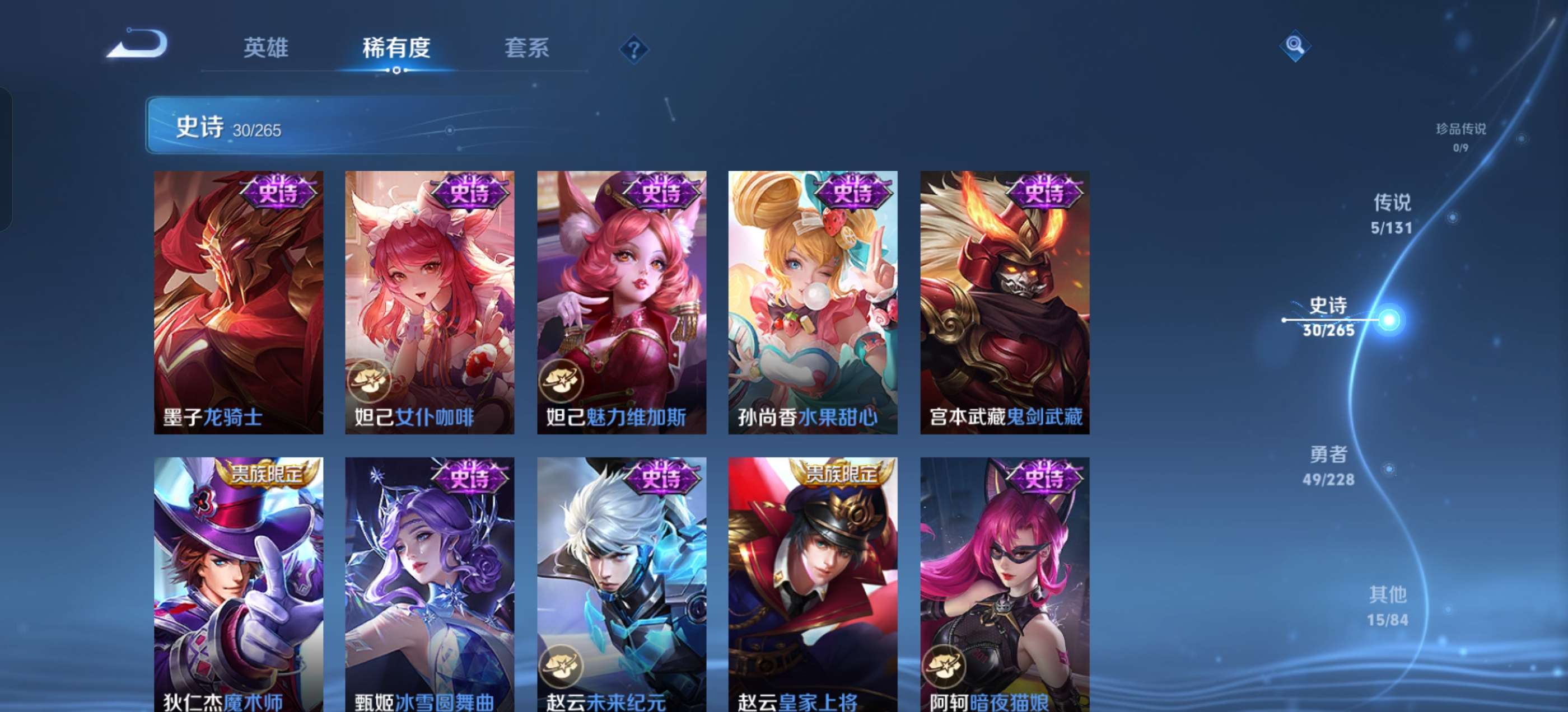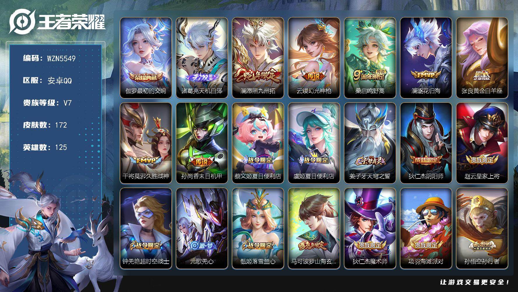皮肤172 英雄125 绝世王者 荣耀典藏1 无双皮肤1 传说7 其他皮肤53-