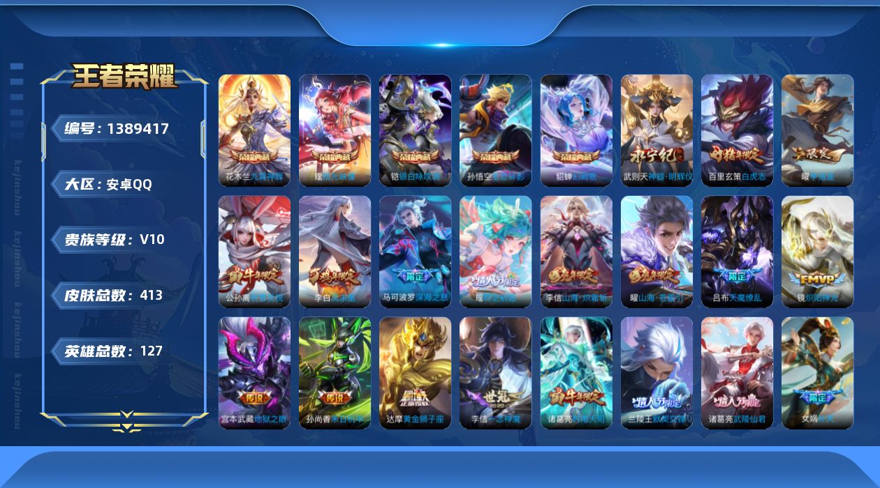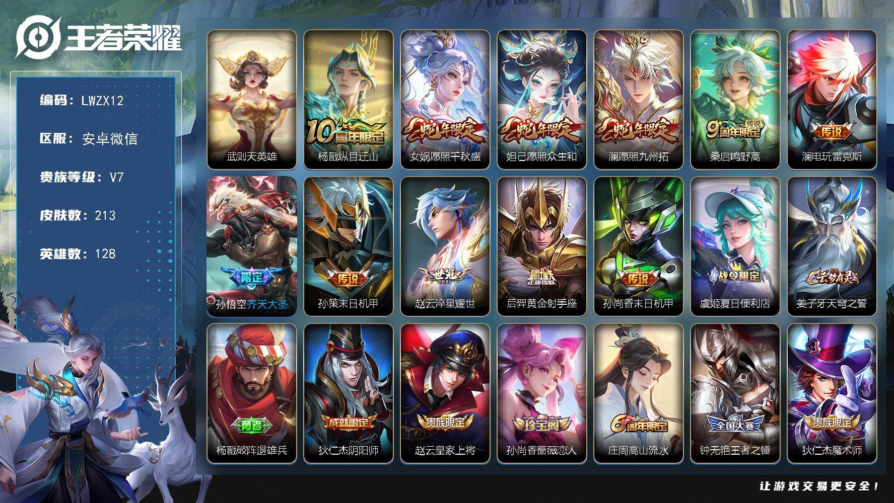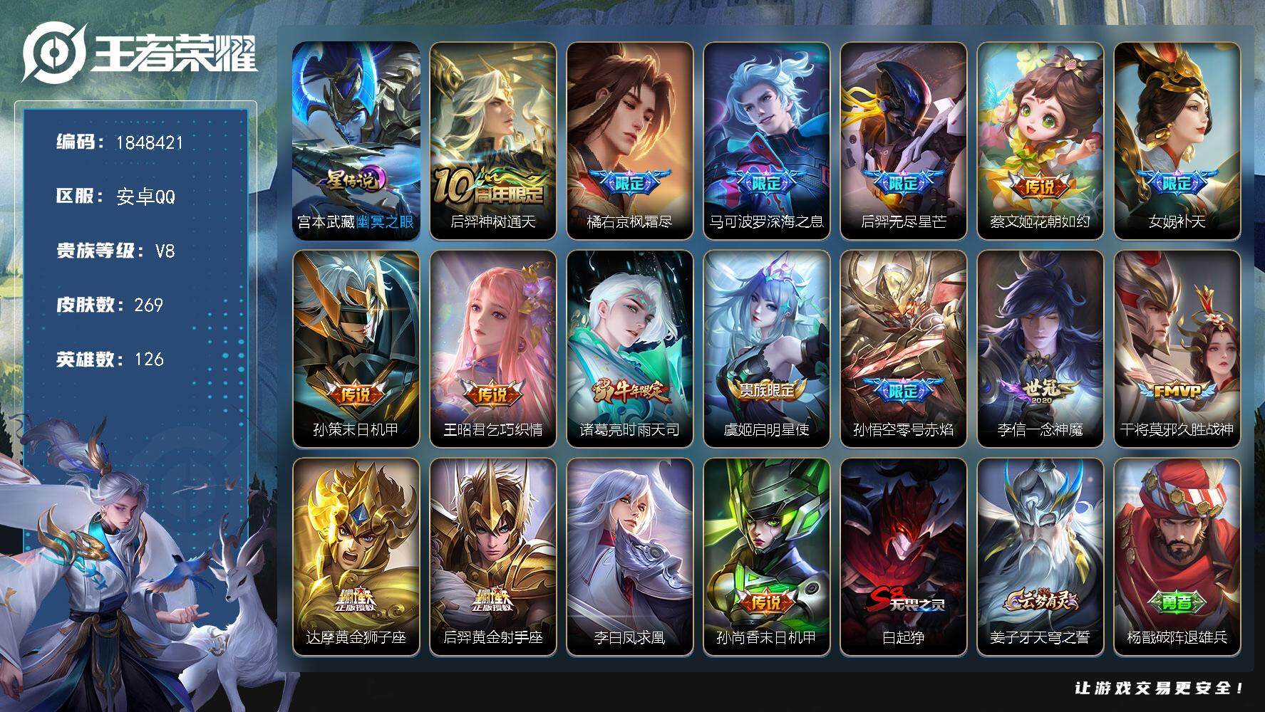 安卓QQ 皮肤126 英雄122 传说6 其他皮肤44 荣耀王者-价格可小刀男号打野对抗小号