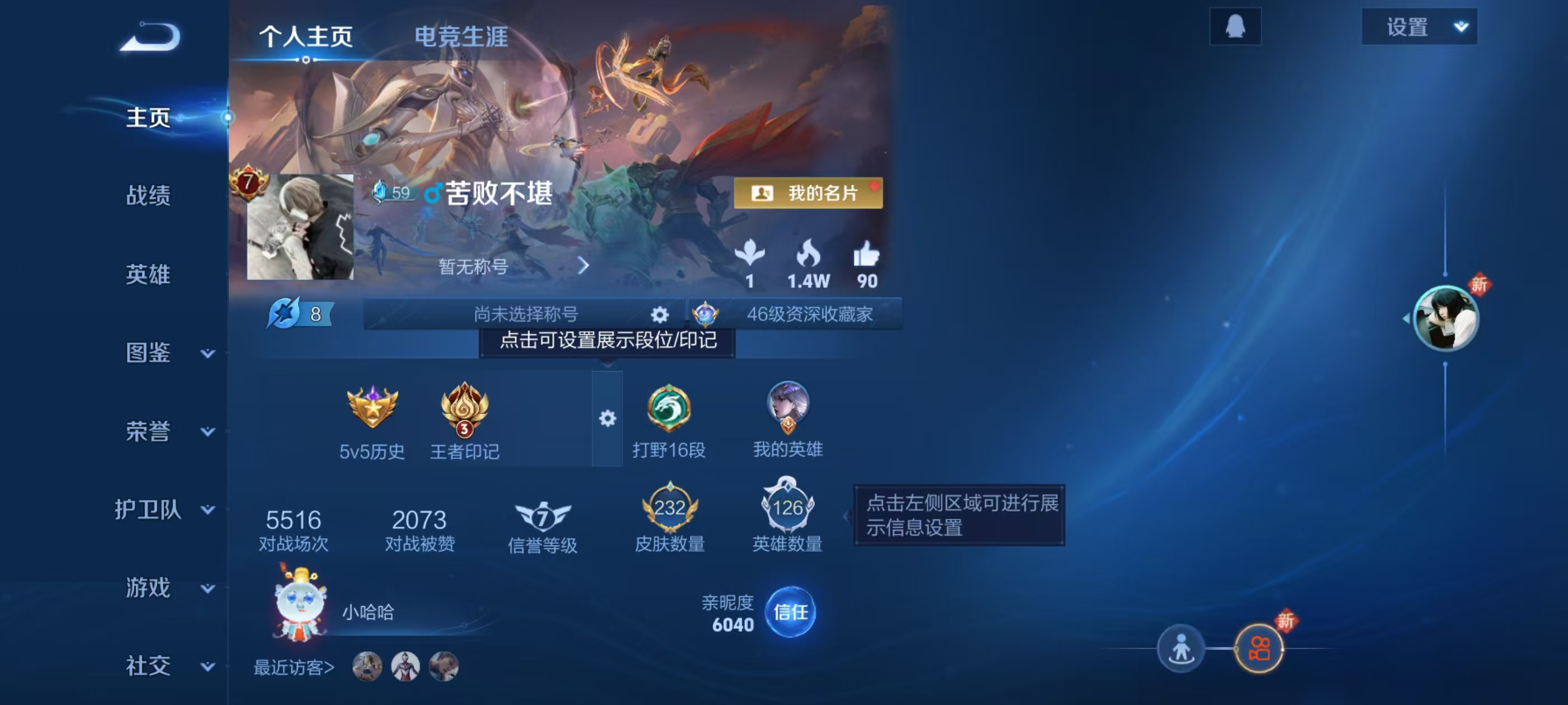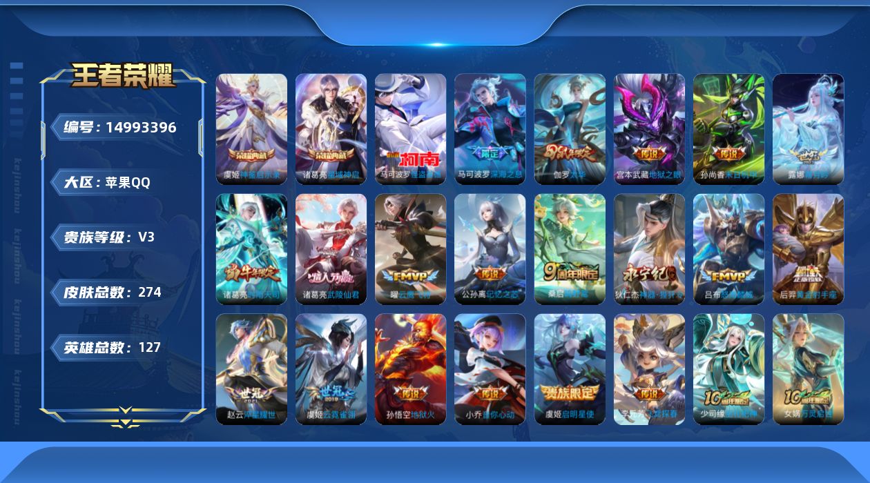 苹果QQ 皮肤282 英雄126 典藏1 传说7 其他皮肤104 至尊星耀-有和平营地王者皮肤多多