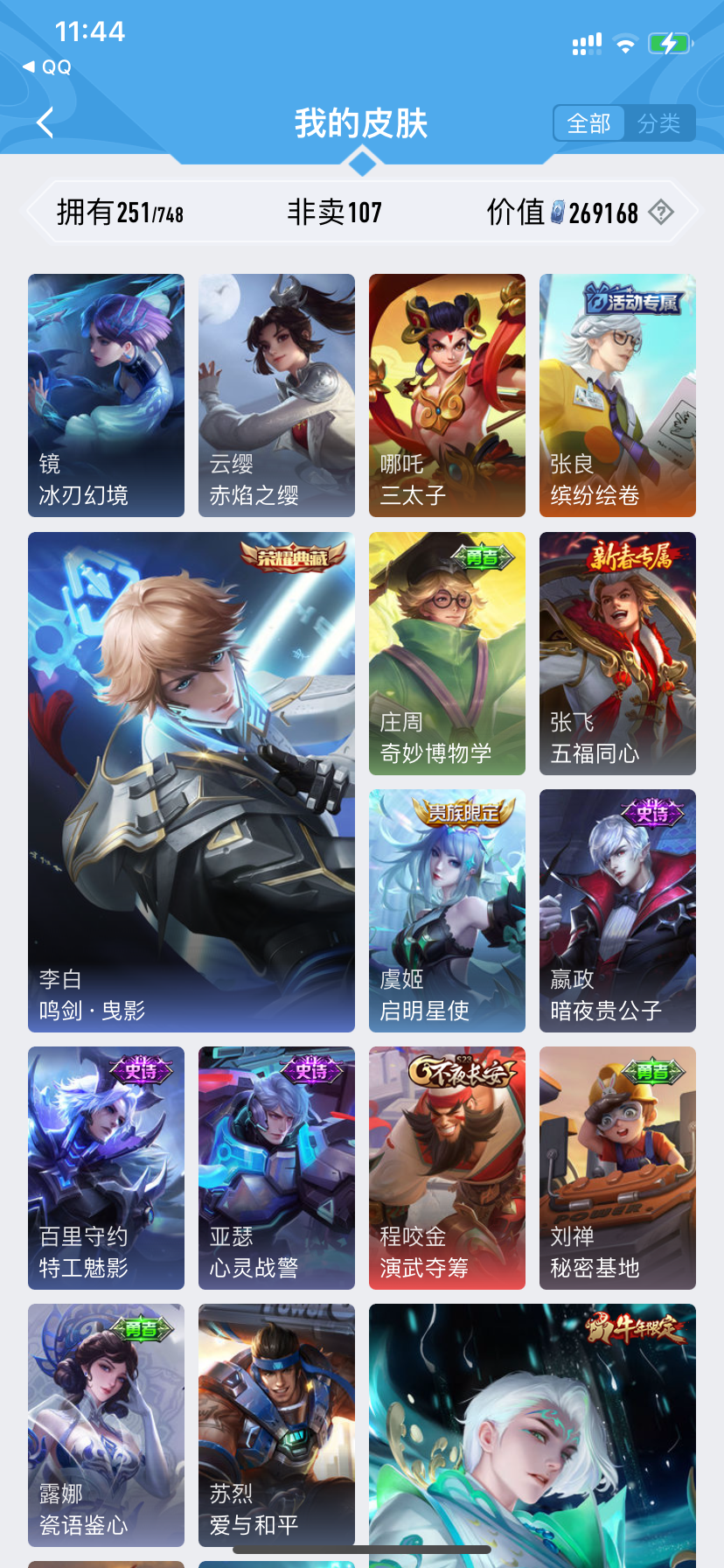 皮肤268 英雄126 最强王者 荣耀典藏1 传说11 其他皮肤90-