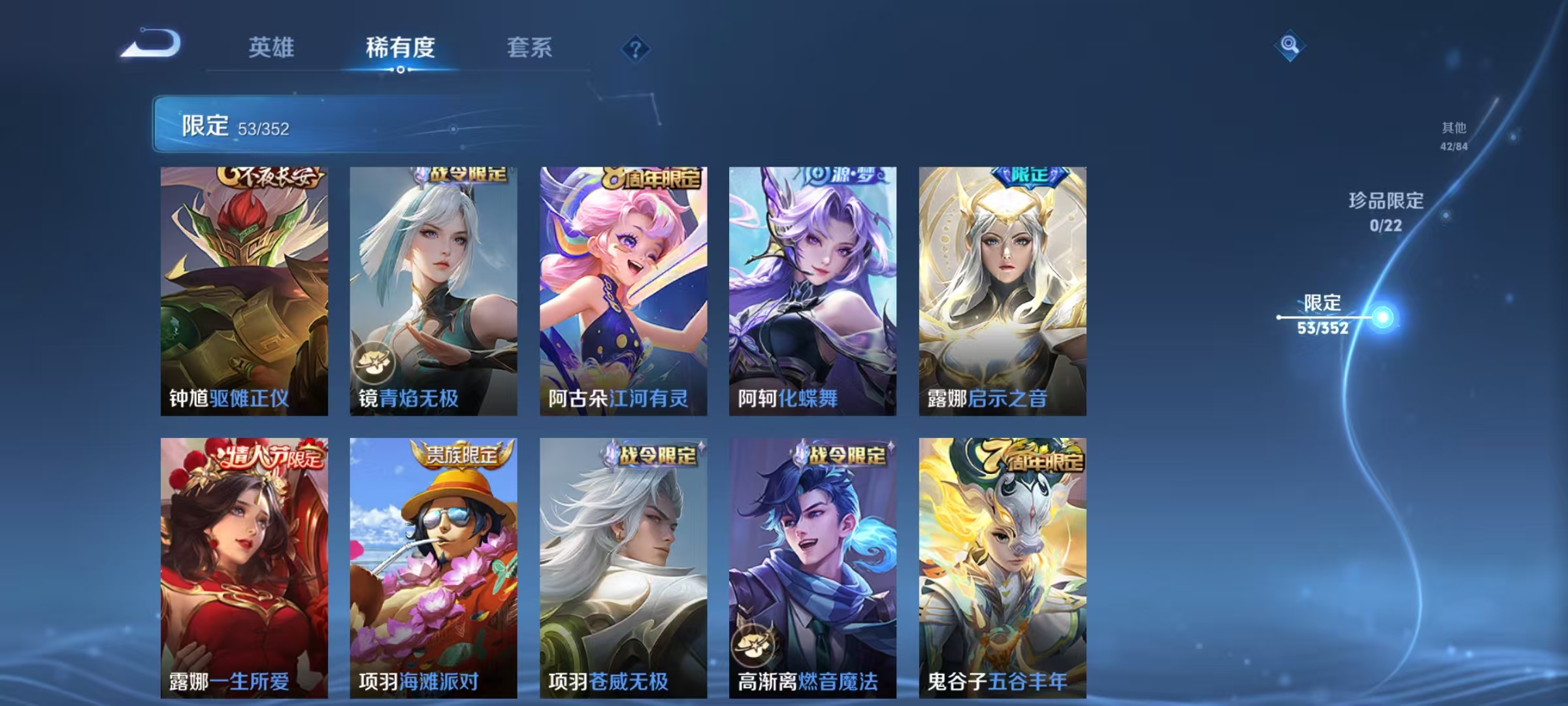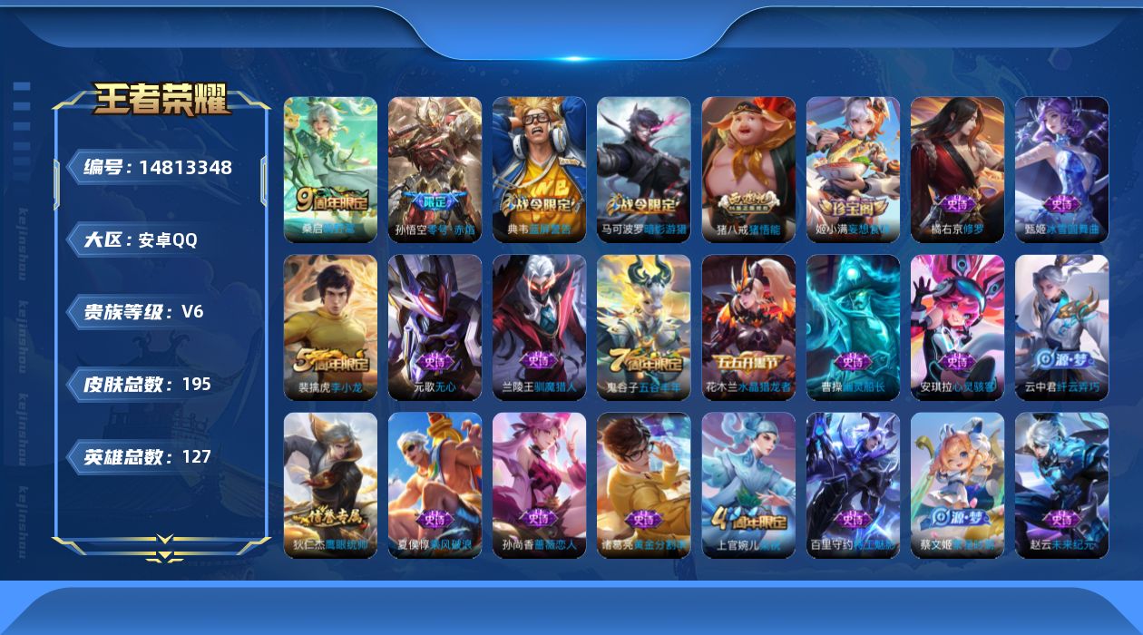 安卓QQ 皮肤237 英雄125 典藏1 传说6 其他皮肤86 至圣王者-