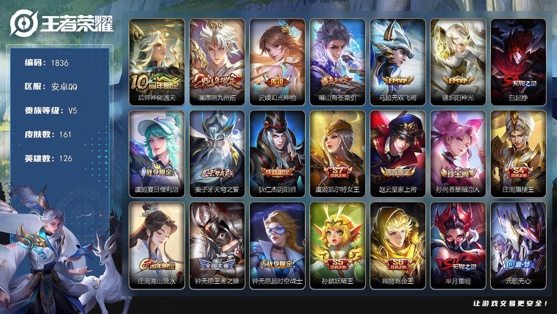 安卓QQ 皮肤161 英雄126 传说6 其他皮肤75 无双王者-