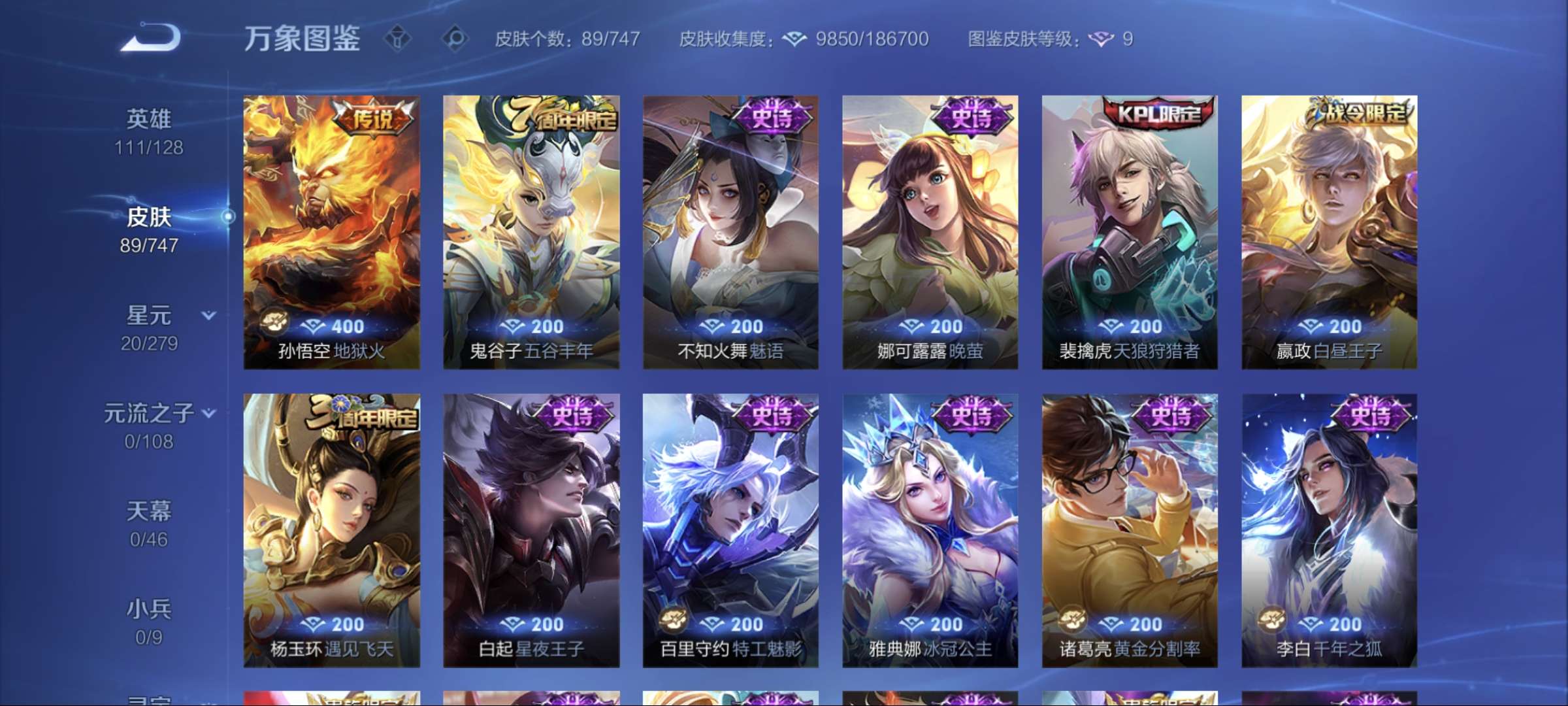 安卓QQ 皮肤79 英雄113 传说4 其他皮肤30 无双王者-