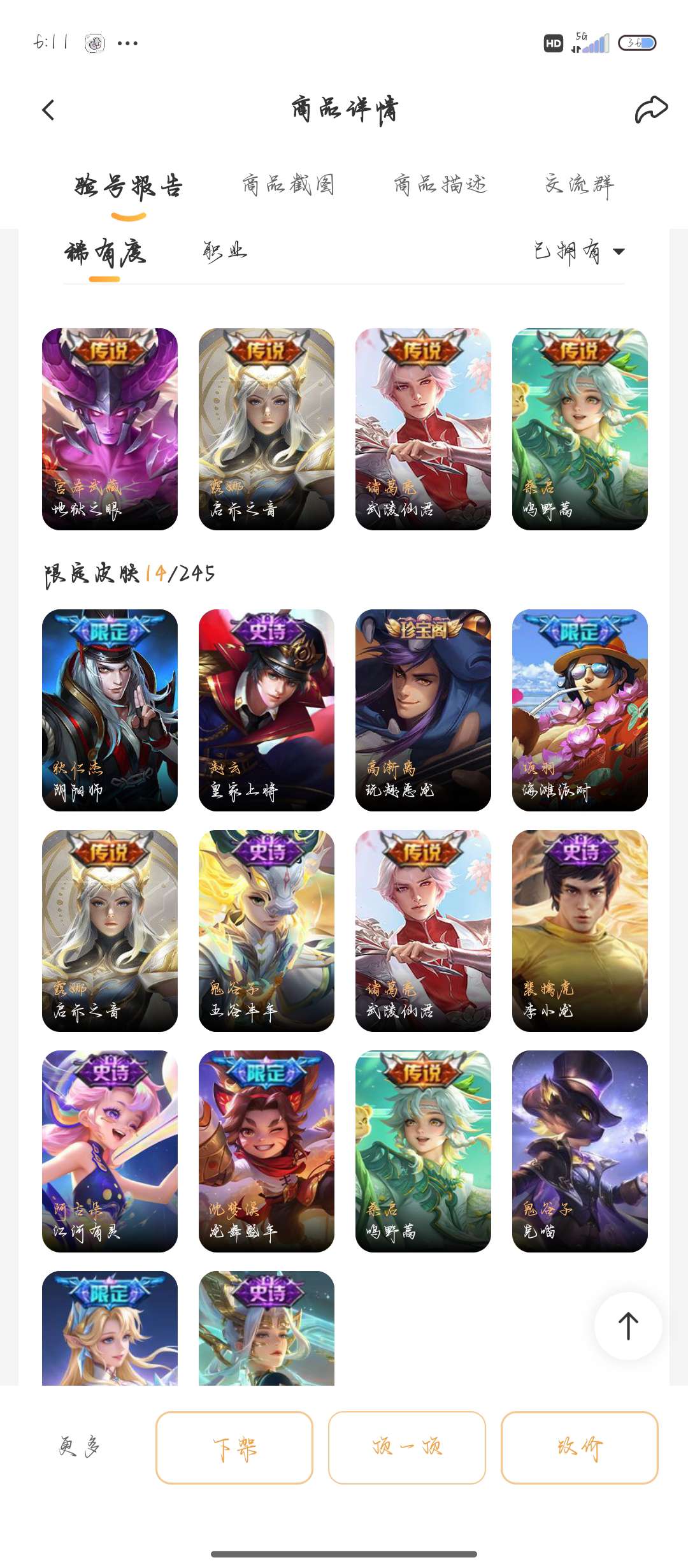 安卓QQ-4传说-245皮肤-125英雄-非凡王者-包赔卖的,好好看一下满铭文,满英雄,哦,史诗新史