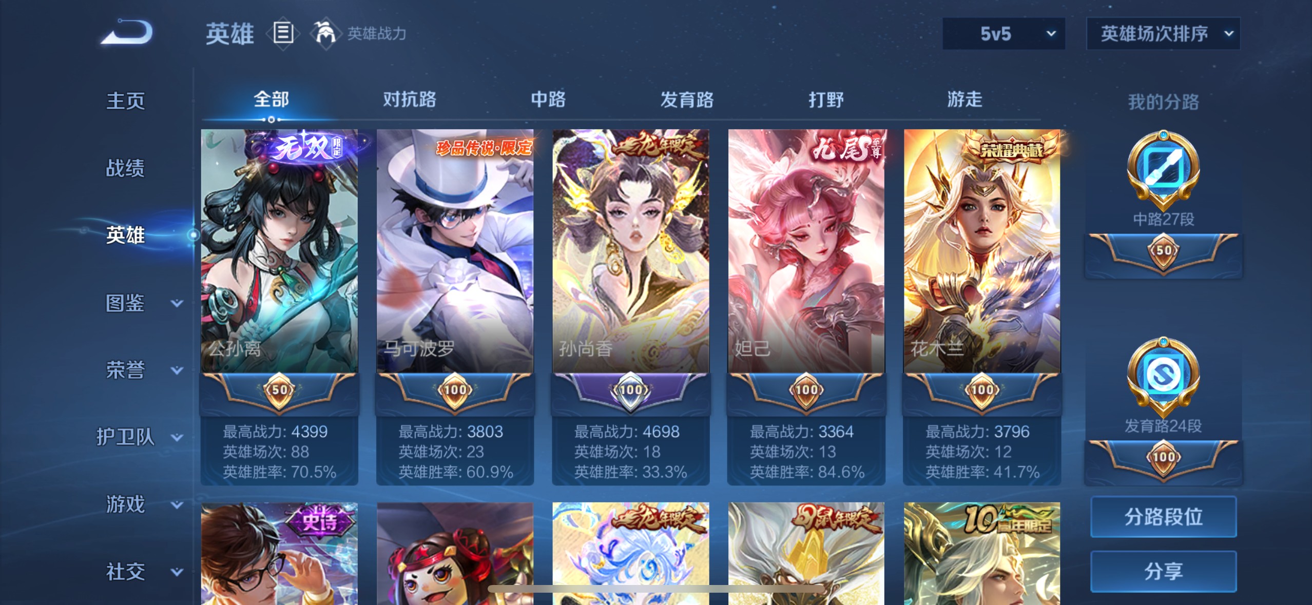 高胜率瑶和镜 场次低 还有一个贵族传承